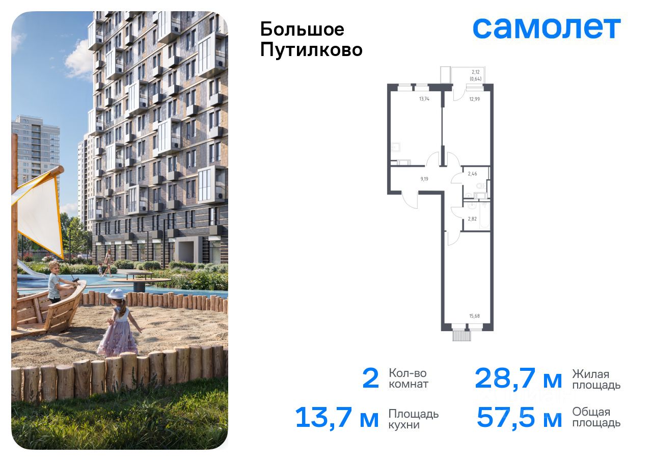 Предлагается 2-комнатная квартира комфорт-класса 57,52 кв.м в корпусе 28 на 4 этаже, в ЖК ''Большое Путилково'' Квартира с чистовой отделкой. Доступность дополнительных опций уточняйте на сайте застройщика.