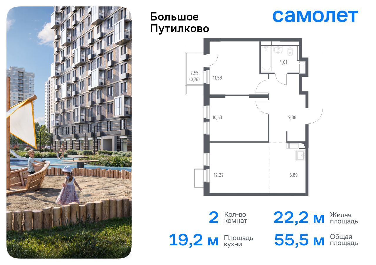 Предлагается 2-комнатная квартира комфорт-класса 55,47 кв.м в корпусе 27 на 13 этаже, в ЖК ''Большое Путилково'' Квартира с чистовой отделкой. Доступность дополнительных опций уточняйте на сайте застройщика.