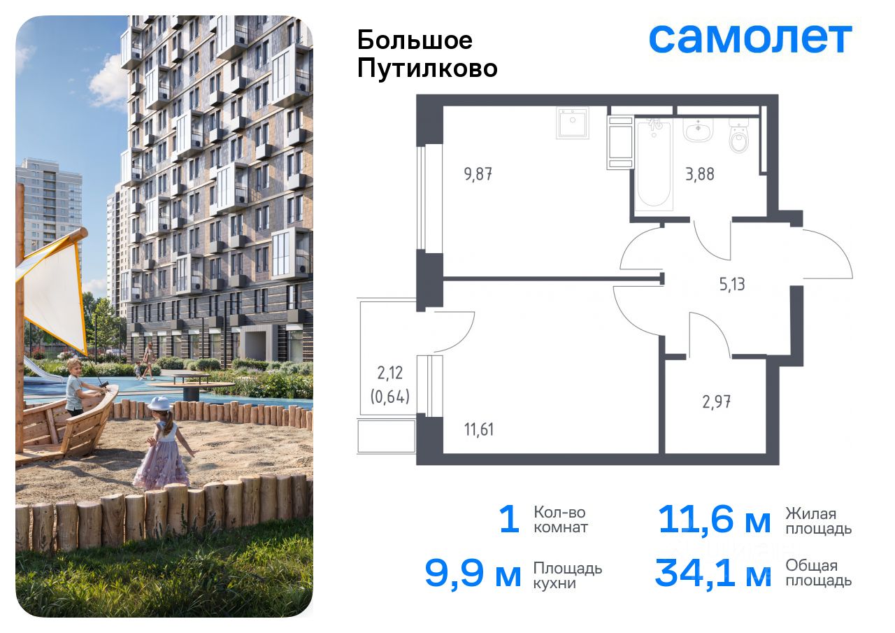 Общая площадь34,1 м2
