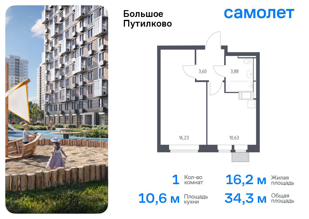 Предлагается 1-комнатная квартира комфорт-класса 34,34 кв.м в корпусе 28 на 9 этаже, в ЖК ''Большое Путилково'' Квартира без отделки. Доступность опции ''отделка'' и возможность комплектации мебелью и декором уточняйте на сайте застройщика.