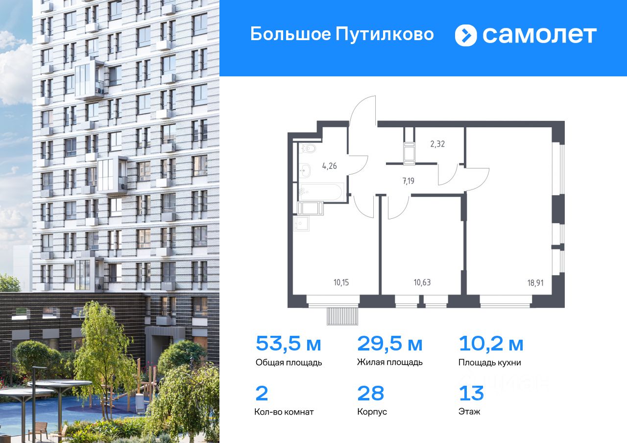 Предлагается 2-комнатная квартира комфорт-класса 53,46 кв.м в корпусе 28 на 13 этаже, в ЖК ''Большое Путилково'' Квартира без отделки. Доступность опции ''отделка'' и возможность комплектации мебелью и декором уточняйте у застройщика.