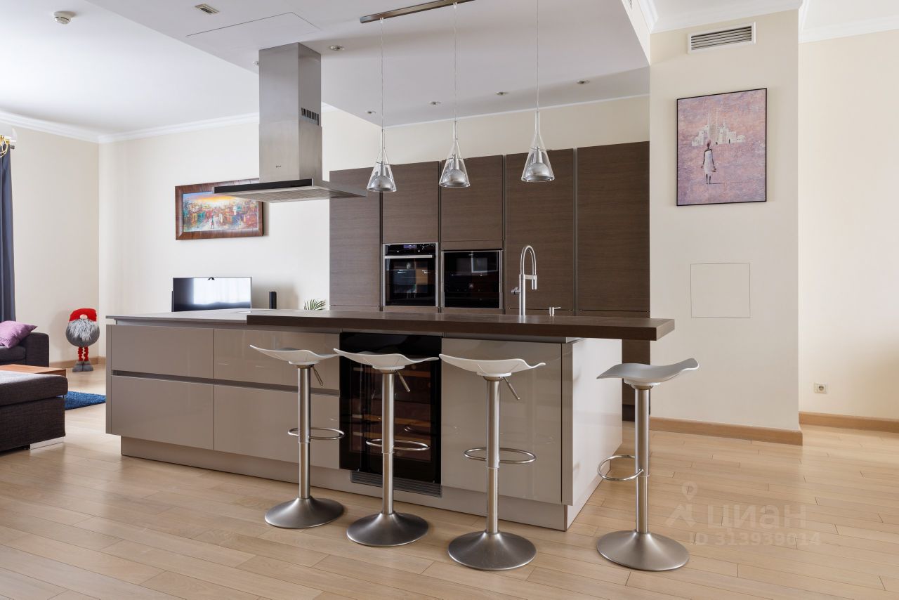 1 этаж: прихожая с большой гардеробной, просторная кухня-гостиная с обеденной зоной (кухня немецкого производителя Nolte, бытовая техника марок Neff, Miele, Bosch, Liebherr), комната отдыха - вторая гостиная с камином, гостевой санузел. Два входа с улицы на 2 стороны тауна.