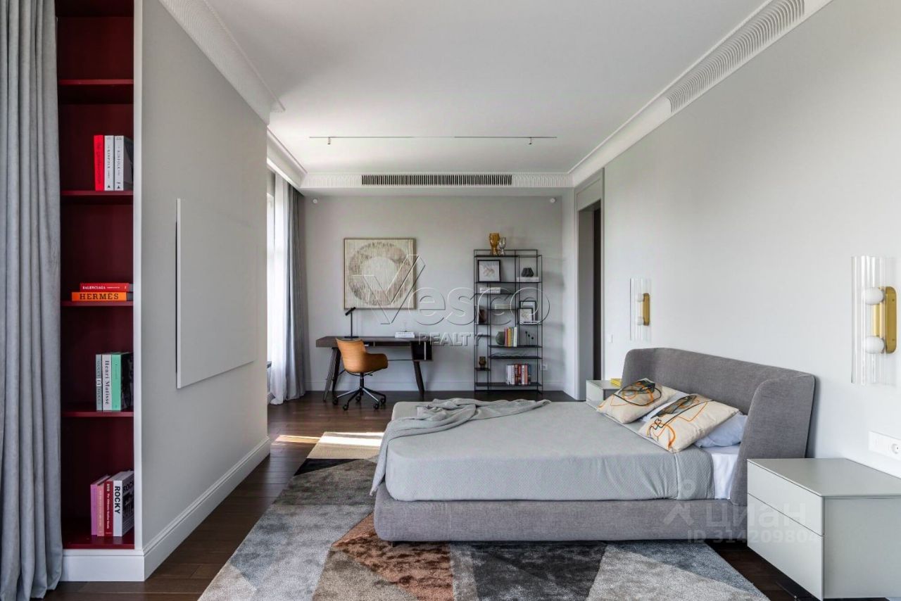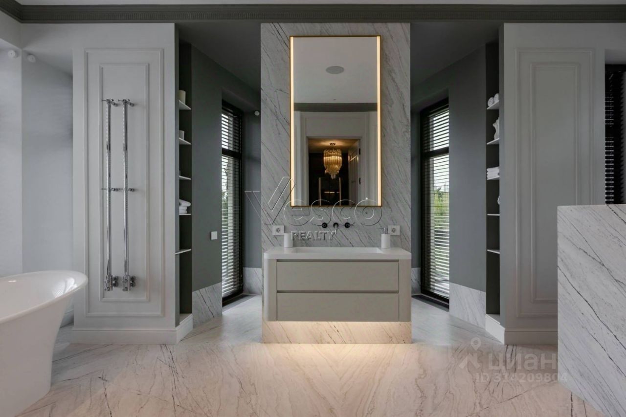 Элегантный особняк в стиле современной классики общей площадью 1852 кв.м расположен в поселке Никольская слобода, самом близком из всех элитных поселков Новорижского шоссе. В доме: 4 уровня, 5 спален, 12 с/у, уютная гостиная, объединенная кухня-столовая, спа-комплекс с джакузи, сауной с панорамным окном и хаммамом, бассейн со светящимся потолком, техническая кухня, кабинет-библиотека, домашний кинотеатр, винное хранилище, комната охраны, оружейная, 2-комнатная квартира для персонала, мансарда 198 кв.м свободной планировки, где можно разместить творческую мастерскую и детскую игровую с театральной сценой.