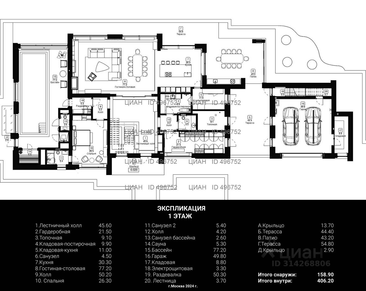 Дом под ключ с мебелью и двумя кухнями. Бассейн, СПА Гараж на 2 авто, парковка на 2 авто
