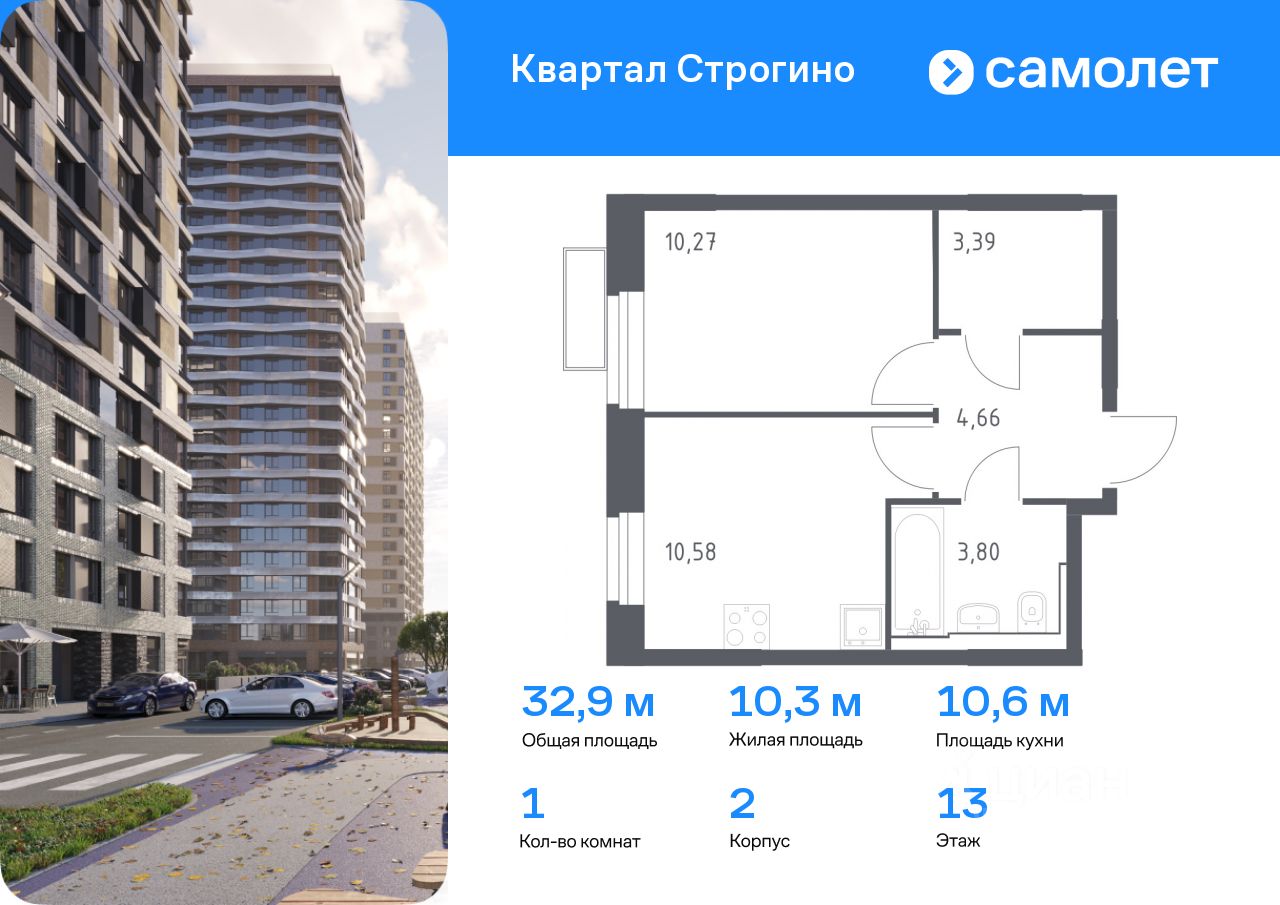 Предлагается 1-комнатная квартира комфорт-класса 32,85 кв.м в корпусе 2 на 13 этаже, в ЖК ''Квартал Строгино'' Квартира без отделки. Доступность опции ''отделка'' и возможность комплектации мебелью и декором уточняйте у застройщика.