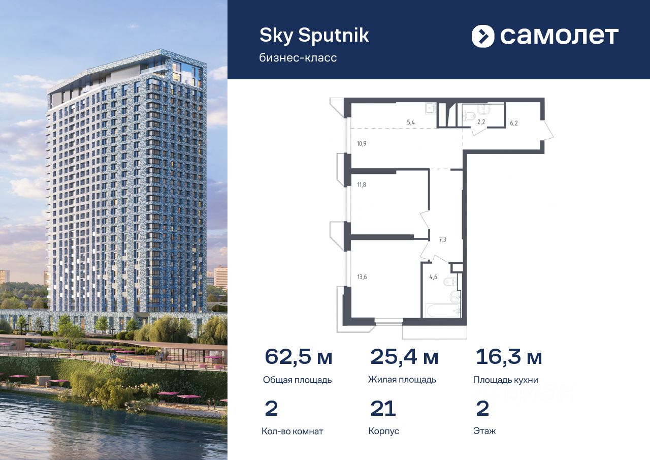 Предлагаются 2-комнатные апартаменты бизнес-класса 62,5 кв.м в корпусе 21 на 2 этаже, в Sky Sputnik Апартаменты с чистовой отделкой. Доступность дополнительных опций уточняйте у застройщика.