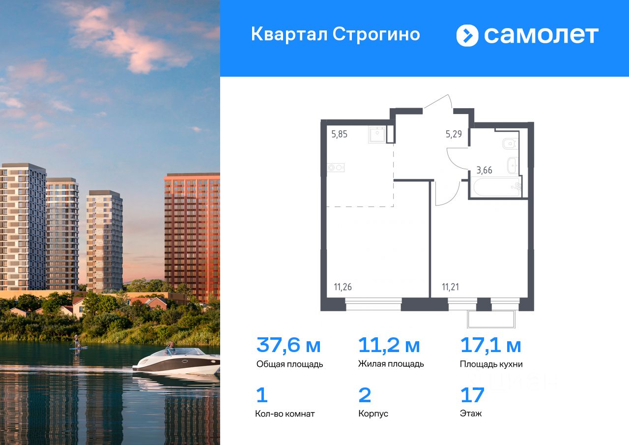 Предлагается 1-комнатная квартира комфорт-класса 37,57 кв.м в корпусе 2 на 17 этаже, в ЖК ''Квартал Строгино'' Квартира без отделки. Доступность опции ''отделка'' и возможность комплектации мебелью и декором уточняйте у застройщика.