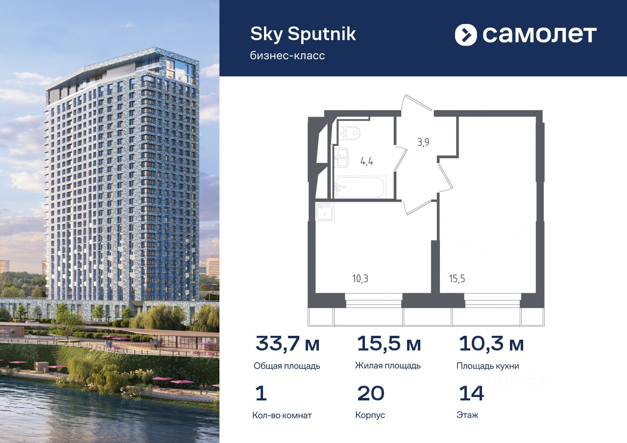 Предлагаются 1-комнатные апартаменты бизнес-класса 33,65 кв.м в корпусе 20 на 14 этаже, в Sky Sputnik Апартаменты с предчистовой отделкой. Доступность дополнительных опций уточняйте у застройщика.