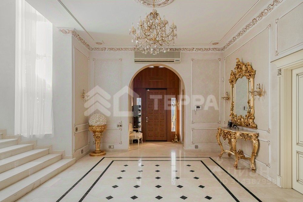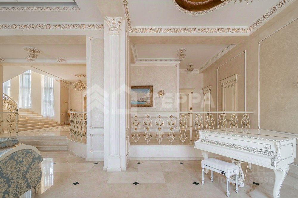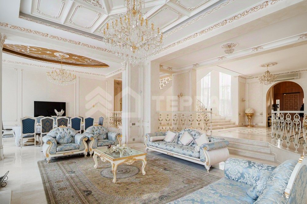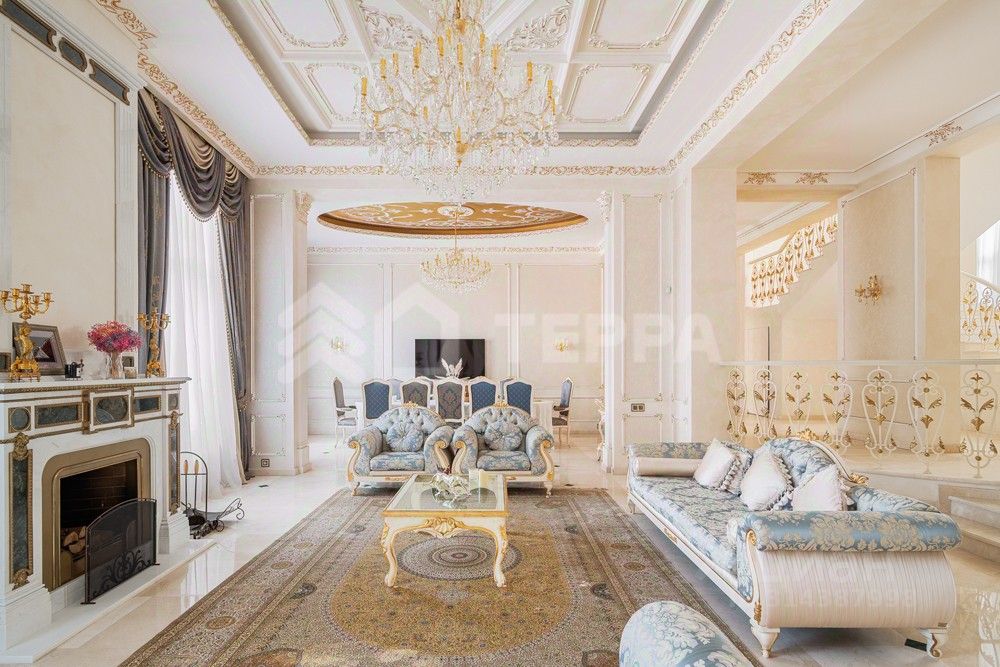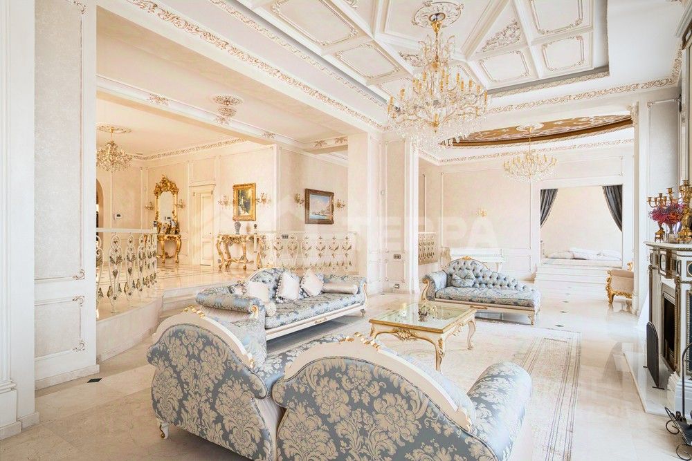 Новорижское шоссе, 12 км от МКАД. Новахово. Продается дом Дом, общей площадью 870 м.кв., расположен на участке в 22 сот. Все коммуникации - центральные. Гараж - Встроенный. Планировка: 1 этаж: холл, гардеробная, гостиная с роялем, камином и зоной домашнего кинотеатра, кабинет, кухня, 2 с/у, постирочная, кладовка, подсобное помещение, котельная, гараж на 2 м/м., 2 этаж: общая зона, мастер спальня с 3 гардеробными и ванной комнатой, блок из 2х спален с просторной гардеробной и ванной комнатой, спальня с гардеробной и с/у, гостевая спальня., Мансарда: детская игровая зона с с/у, спальня няни с гардеробной и с/у. Просторный классический особняк в обжитом поселке Новахово.В доме выполнена отделка ''под ключ''. Отапливаемый пол из натурального художественного паркета и мрамора. Лестница с коваными перилами, лепнина, потолки с ручной росписью. Техника на кухне бренда SMEG, стиральная машина Miele. Сантехника Devon&Devon, Villeroy&Boch, Hoesch. На участке: дом для проведения праздников с большим обеденным столом, барной стойкой, с/у и зоной для приготовления пищи (барбекю, мангал, раковина), дом для персонала, пост охраны, место для парковки 2х автомобилей, вольеры для собак. лот: 18400