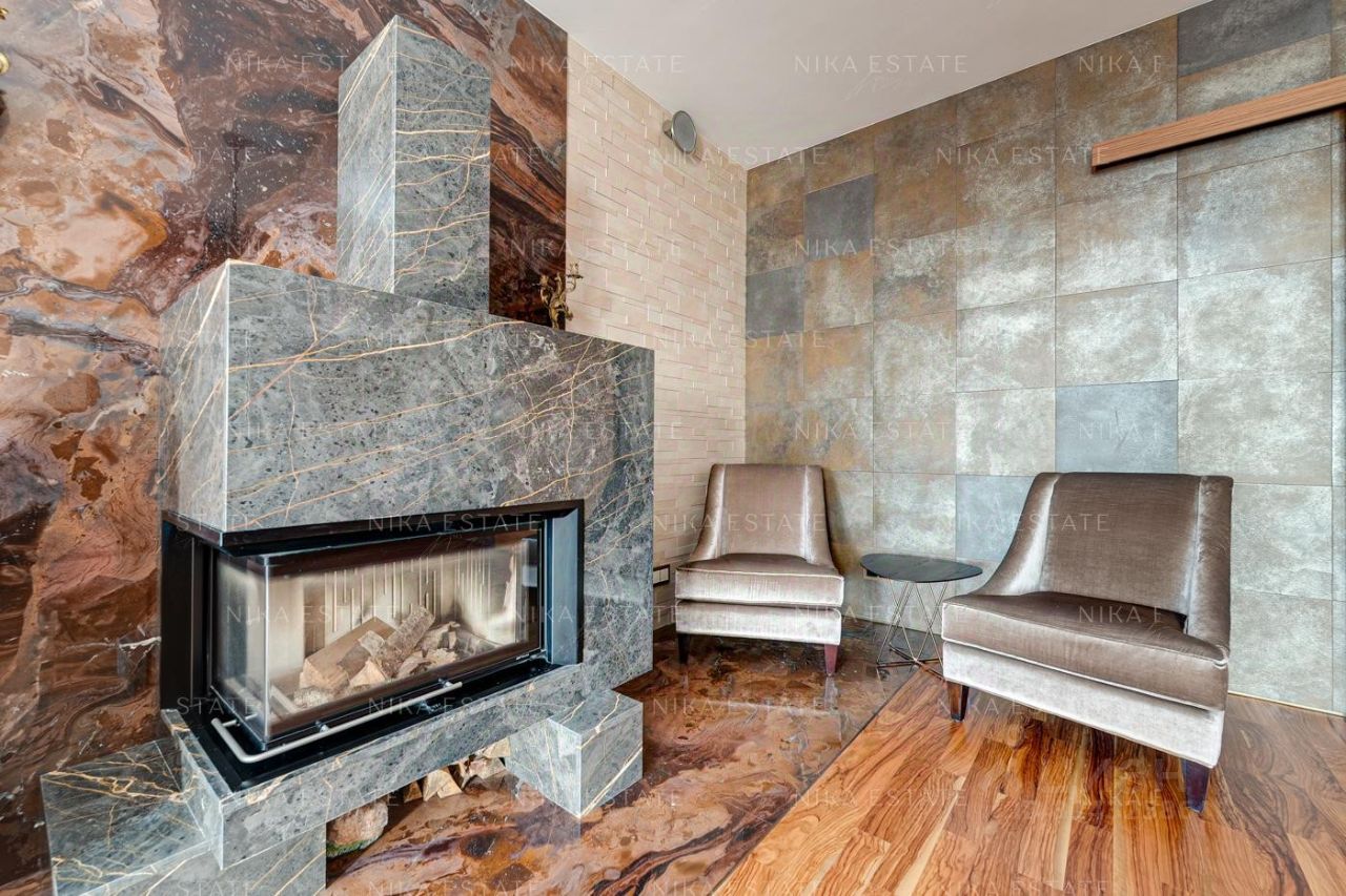 3 спальни, из них 2 мастер-спальни + кабинет с гостевым спальным местом, гостинаястоловая с дровяным камином.