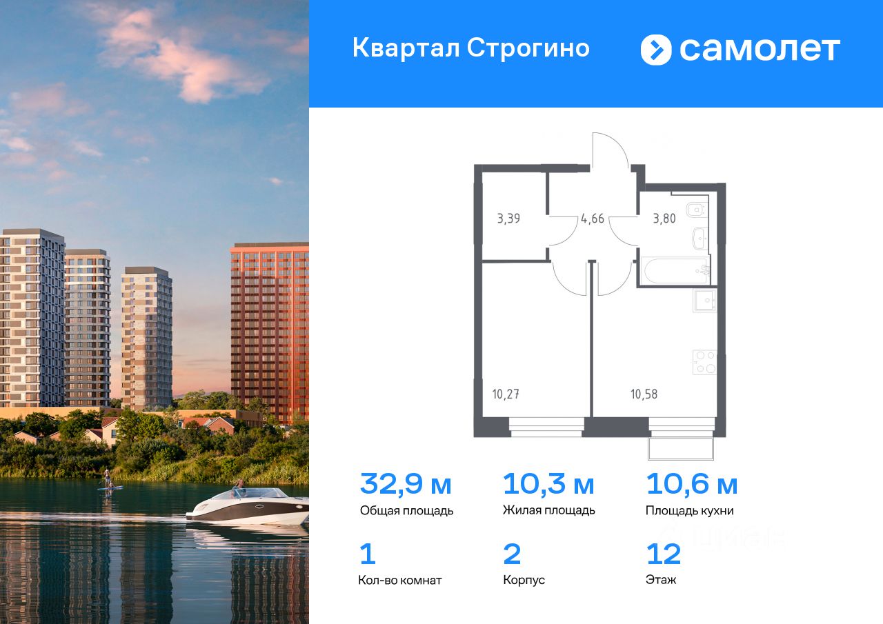 Предлагается 1-комнатная квартира комфорт-класса 32,85 кв.м в корпусе 2 на 12 этаже, в ЖК ''Квартал Строгино'' Квартира без отделки. Доступность опции ''отделка'' и возможность комплектации мебелью и декором уточняйте у застройщика.