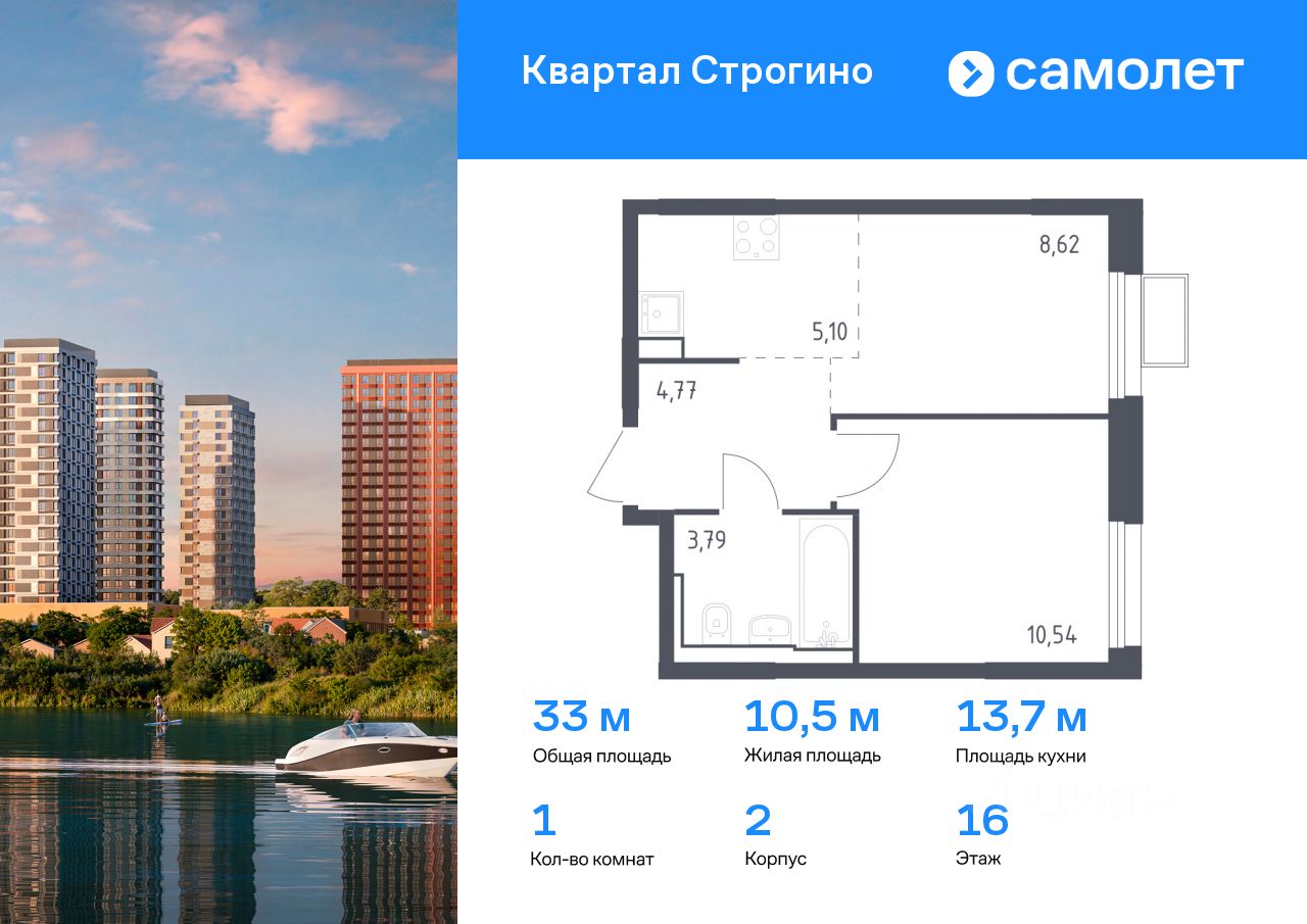 Предлагается 1-комнатная квартира комфорт-класса 32,98 кв.м в корпусе 2 на 16 этаже, в ЖК ''Квартал Строгино'' Квартира с чистовой отделкой. Доступность дополнительных опций уточняйте у застройщика.