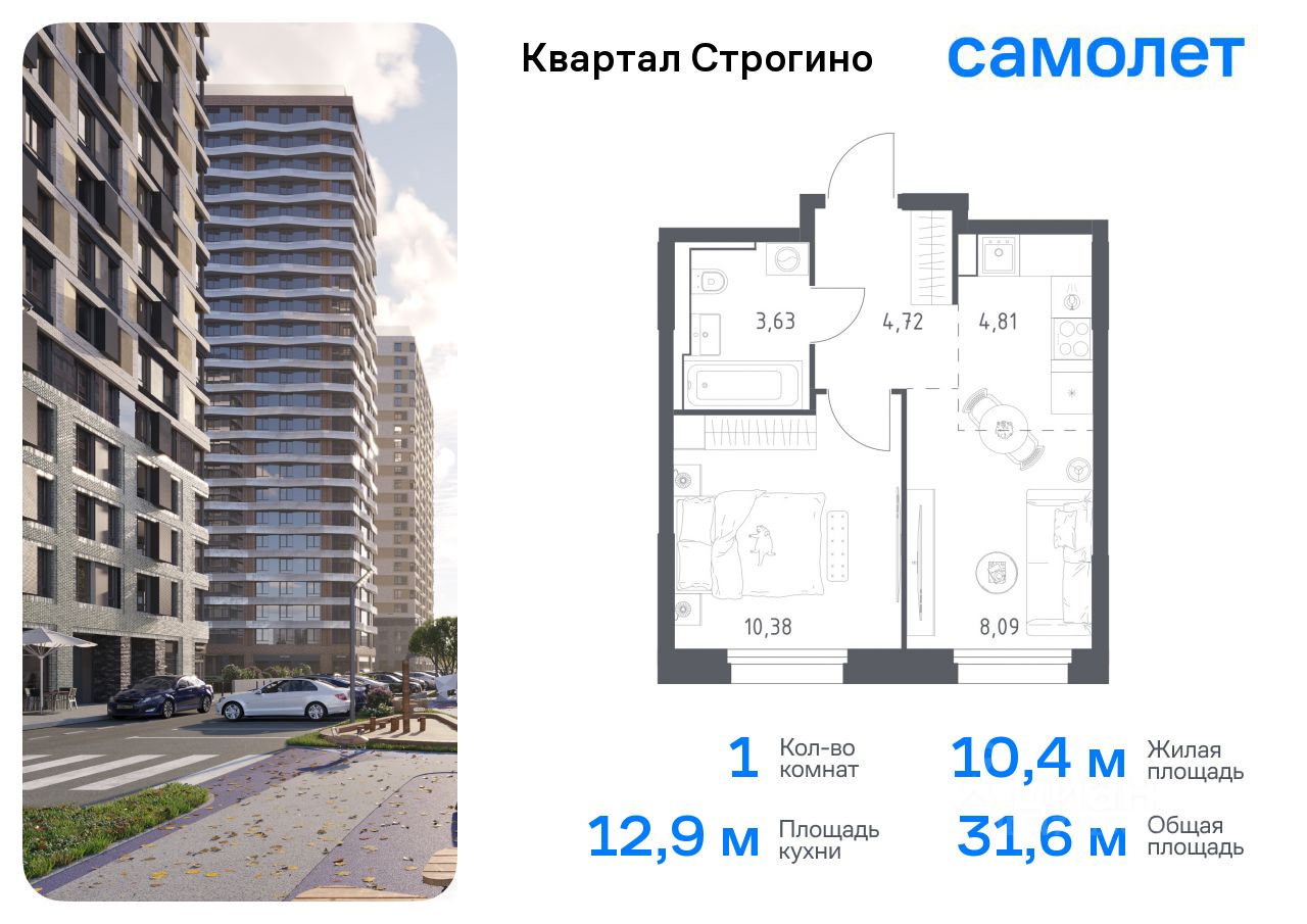 Предлагается 1-комнатная квартира комфорт-класса 31,63 кв.м в корпусе 1 на 21 этаже, в ЖК ''Квартал Строгино'' Квартира с чистовой отделкой. Доступность дополнительных опций уточняйте у застройщика.