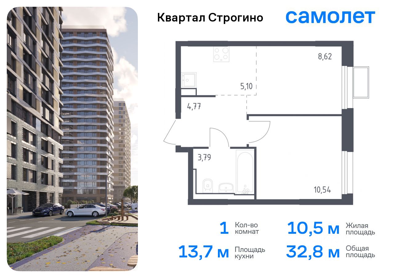 Предлагается 1-комнатная квартира комфорт-класса 32,98 кв.м в корпусе 2 на 14 этаже, в ЖК ''Квартал Строгино'' Квартира с чистовой отделкой. Доступность дополнительных опций уточняйте у застройщика.