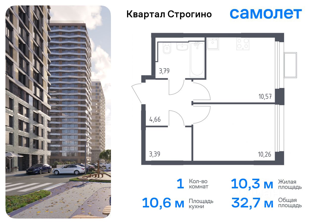 Предлагается 1-комнатная квартира комфорт-класса 32,67 кв.м в корпусе 2 на 4 этаже, в ЖК ''Квартал Строгино'' Квартира с чистовой отделкой. Доступность дополнительных опций уточняйте у застройщика.