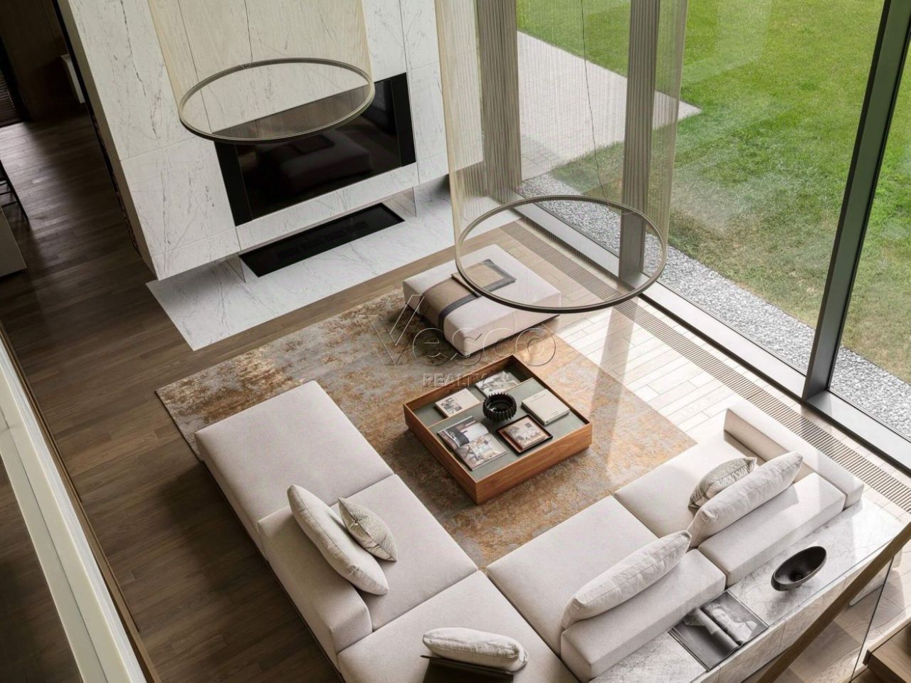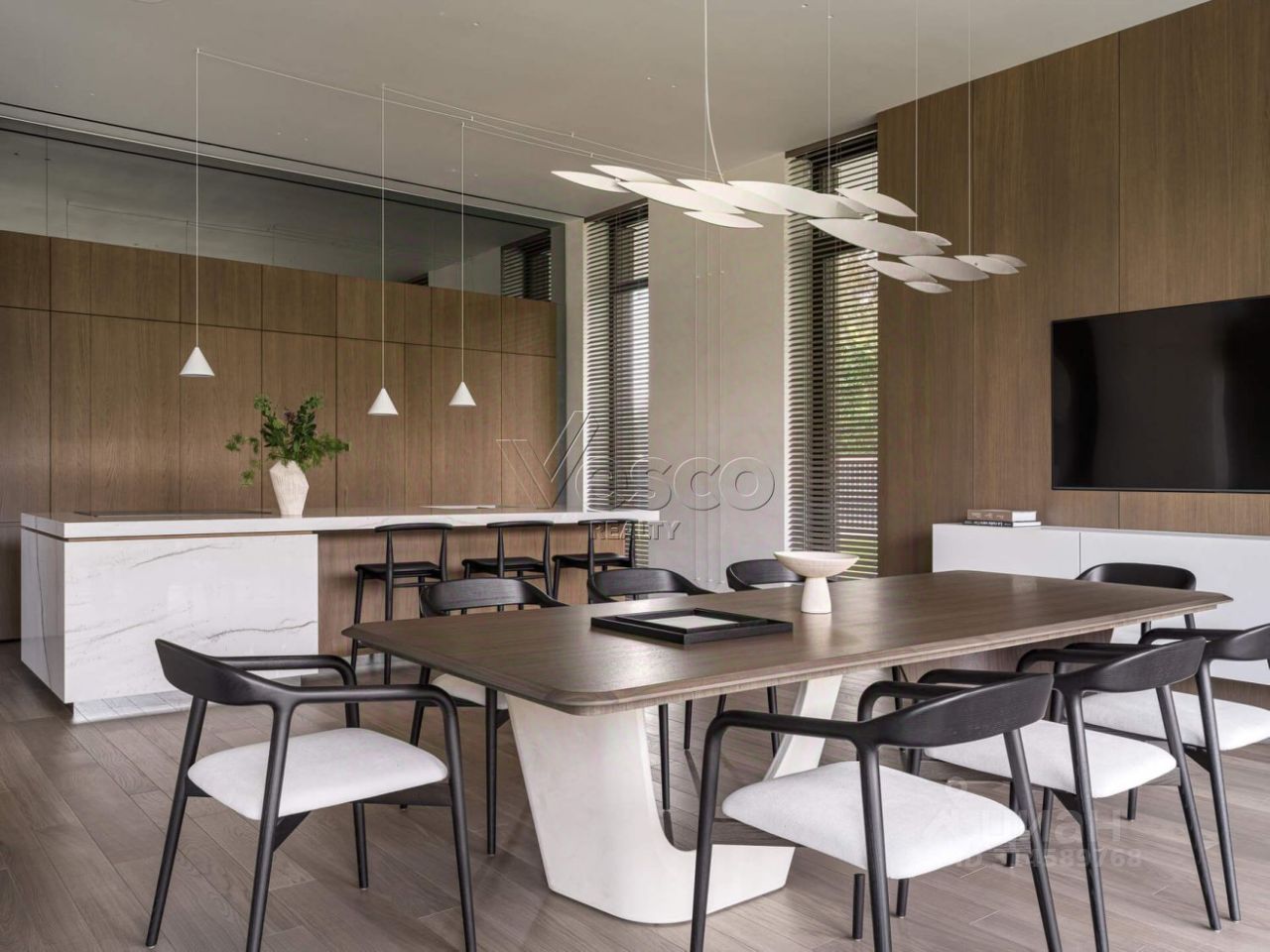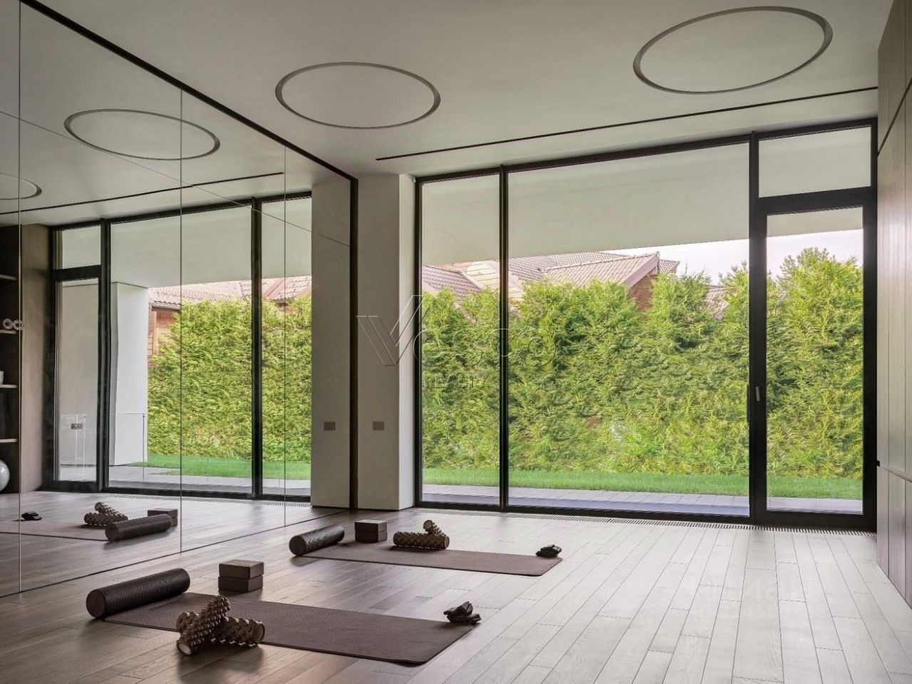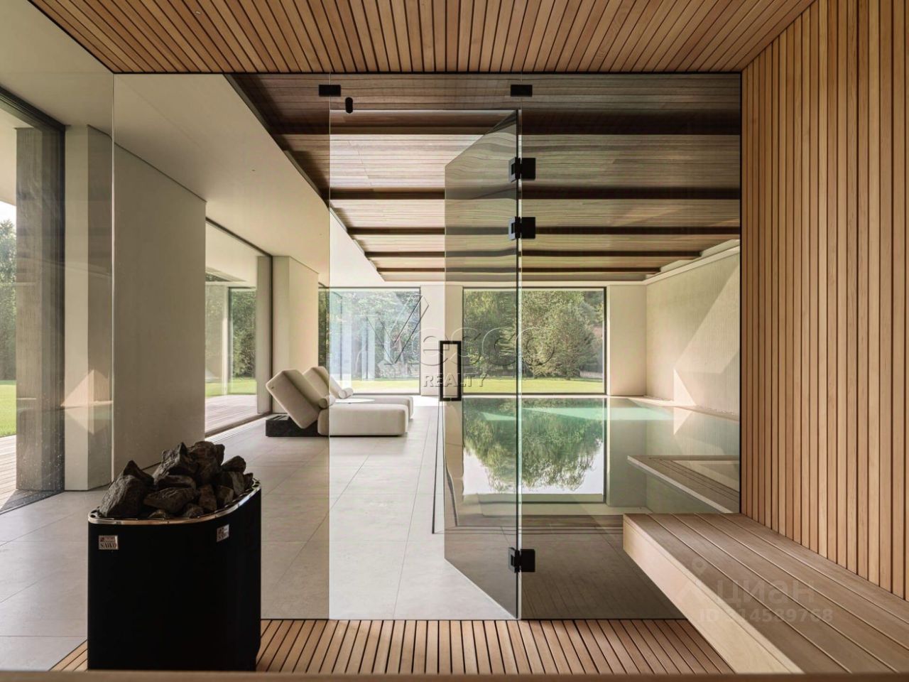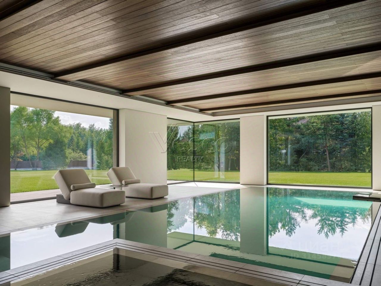 * новый современный дом, * панорамные окна в пол, * гостиная со вторым светом и высотой потолков 7,35 м, * двусторонний камин, * лифт, * двухмаршевая парящая лестница, * спа-комплекс с переливным бассейном 11*4,5 м с противотоком, с джакузи и тропическим душем, с зоной отдыха и безбарьерным выходом на террасу, с сауной, хаммамом и массажным кабинетом, * парадная кухня с островом и зоной завтраков на 4 посадочных места, * техническая кухня и винная комната, * гараж для автомобилей на 3 м/м с с/у и техническим душем и лапомойкой для собак, * полная система автоматизации умный дом, * приточно-вытяжная вентиляция, * центральное кондиционирование с возможностью установки системы увлажнения, * автономный блок для персонала с 2 спальнями.