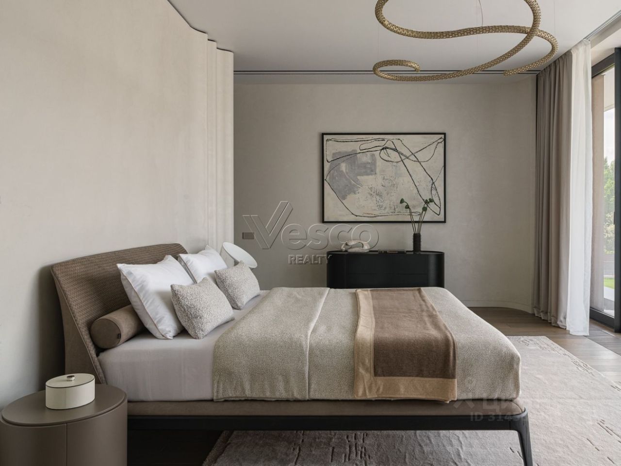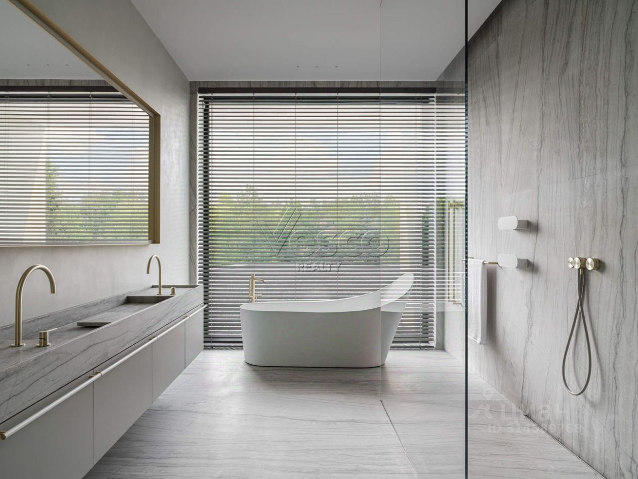 В доме: мастер-спальня с двумя ванными и гардеробной, разделенной на зону для него и для нее, а также 4 спальни с отдельными гардеробными и ванными комнатами, спа-комплекс с бассейном/сауной/хаммамом, кабинет, хобби-комната под спортивный зал, детскую игровую или помещение для занятий.