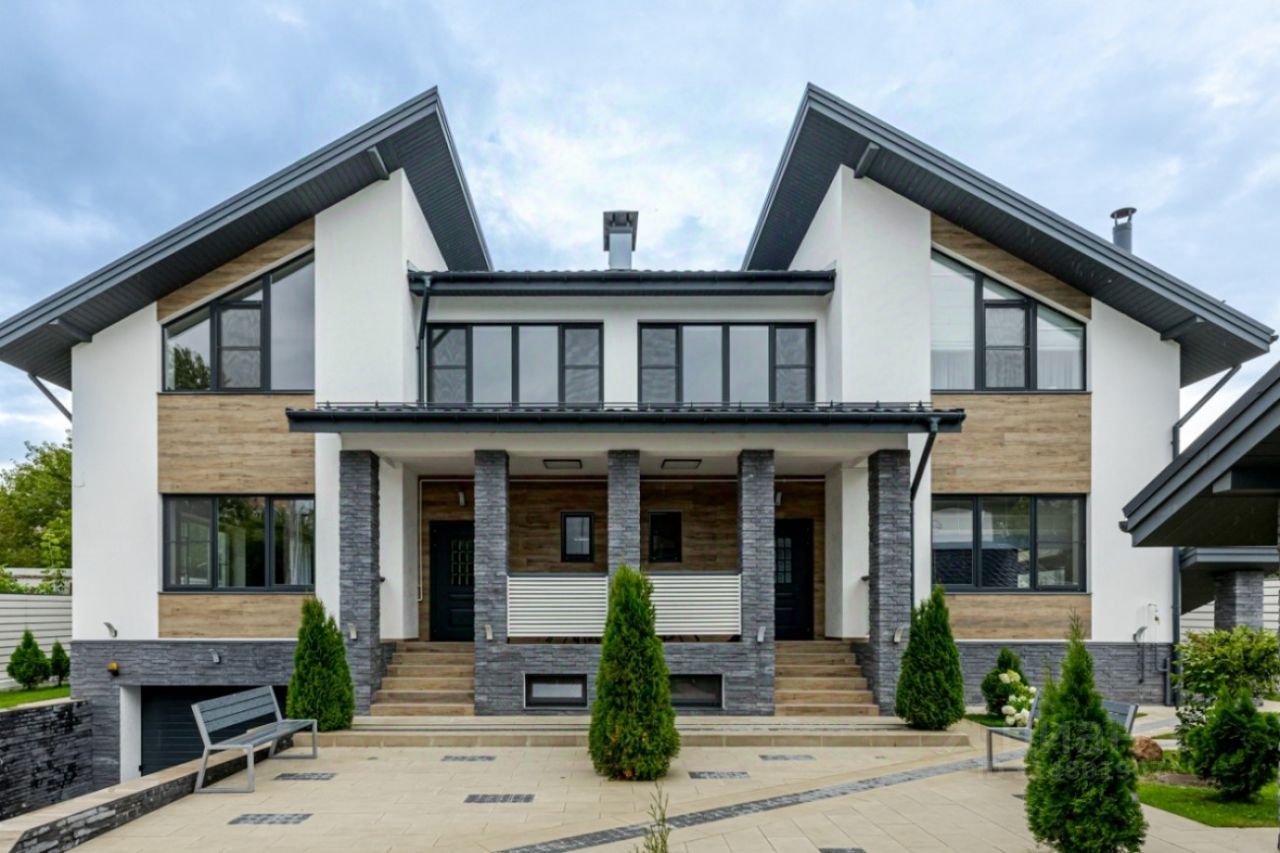 Лот 57985. Дом под ключ 623 кв.м. на участке 8.68 соток. Количество спален: 6. Петрово-Дальнее, Ильинское шоссе, 15 км от МКАД. Петрово-Дальнее. Дом дуплекс в средиземноморском стиле на одну семью (дети, родители), расположен в городской черте, площадью 623 кв.м с отделкой ''под ключ''.