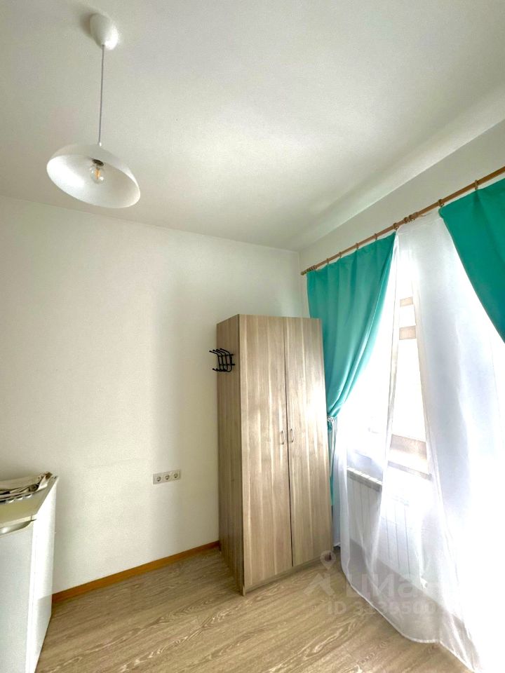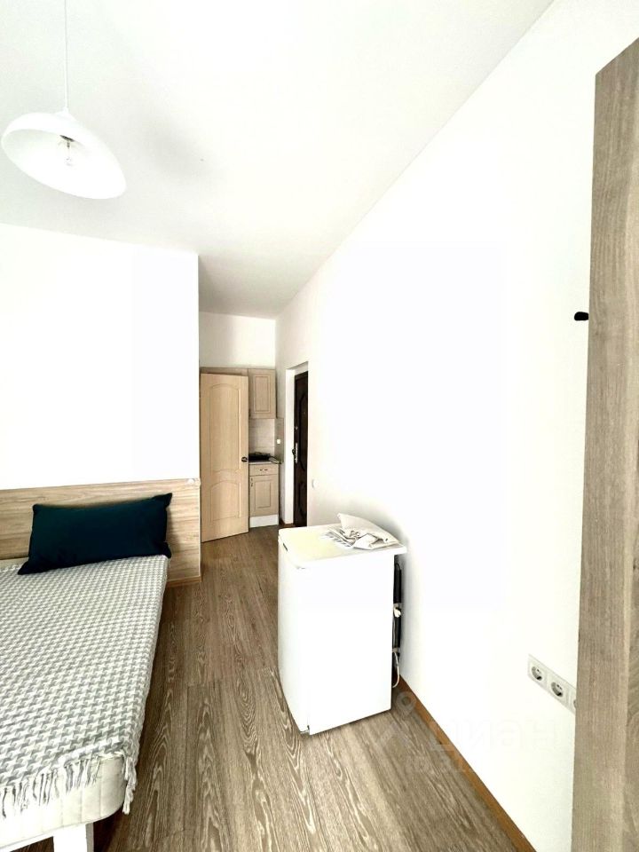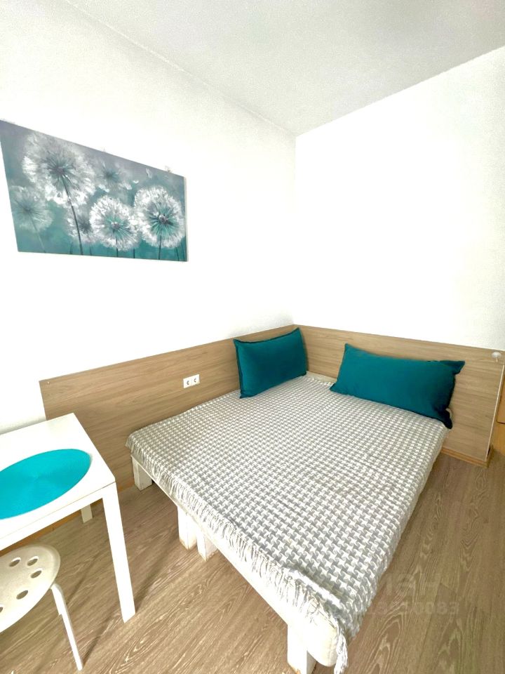 В квартире есть кровать, шкаф для одежды, кухонная зона для приготовления еды, холодильник, стиральная машина и совмещенный санузел. Окна выходят на тихий двор.