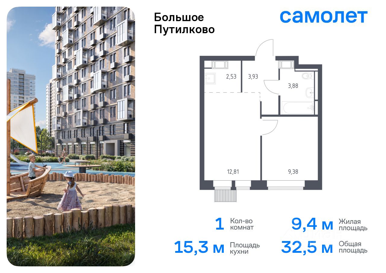 Предлагается 1-комнатная квартира комфорт-класса 32,53 кв.м в корпусе 28 на 9 этаже, в ЖК ''Большое Путилково'' Квартира без отделки. Доступность опции ''отделка'' и возможность комплектации мебелью и декором уточняйте у застройщика.