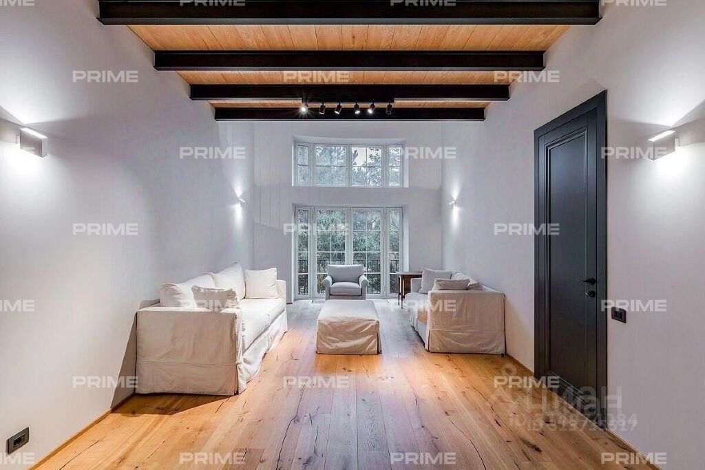 В цокольном этаже расположены рабочая кухня, ванная комната, помещение для персонала, а также места для будущей сауны и джакузи, и кладовые. На первом этаже расположены просторный холл, уютная спальня/кабинет, ванная комната с душевой кабиной, светлая столовая и гостиная с панорамными окнами и выходом на террасу, из которой открываются великолепные виды. На втором этаже находятся две спальни, каждая со своей гардеробной и ванной комнатой. Планировка Цоколь: помещение свободного назначения, квартира для персонала, санузел, сауна, гардеробная, постирочная, техническое помещение. 1 этаж: холл, столовая с выходом на террасу, гостиная с камином, кухня, спальня, санузел, душевая, гараж. 2 этаж: две спальни со своими санузлами и гардеробными, комната отдыха.