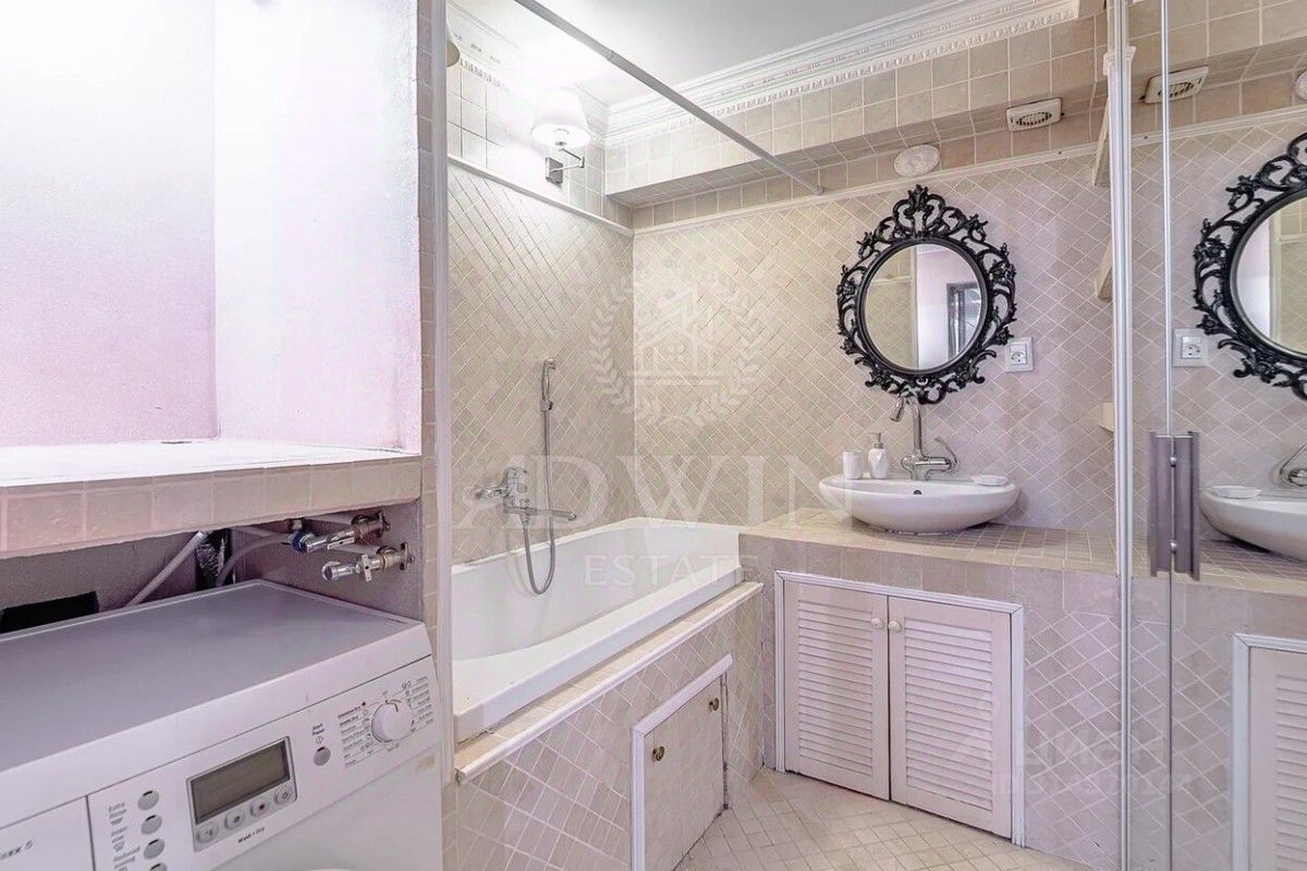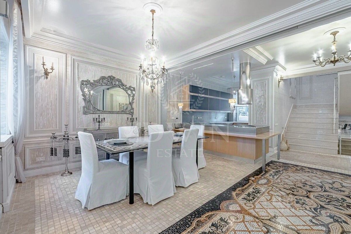 Аренда большого таунхауса площадью 370 кв.м. с эксклюзивным дизайнерским ремонтом в стиле современной итальянской классики. Коттеджный поселок Петровский. В доме просторный первый этаж с гостиной с камином и панорамным видом на лесной участок, есть СПА зона, все спальни с ванными комнатами.