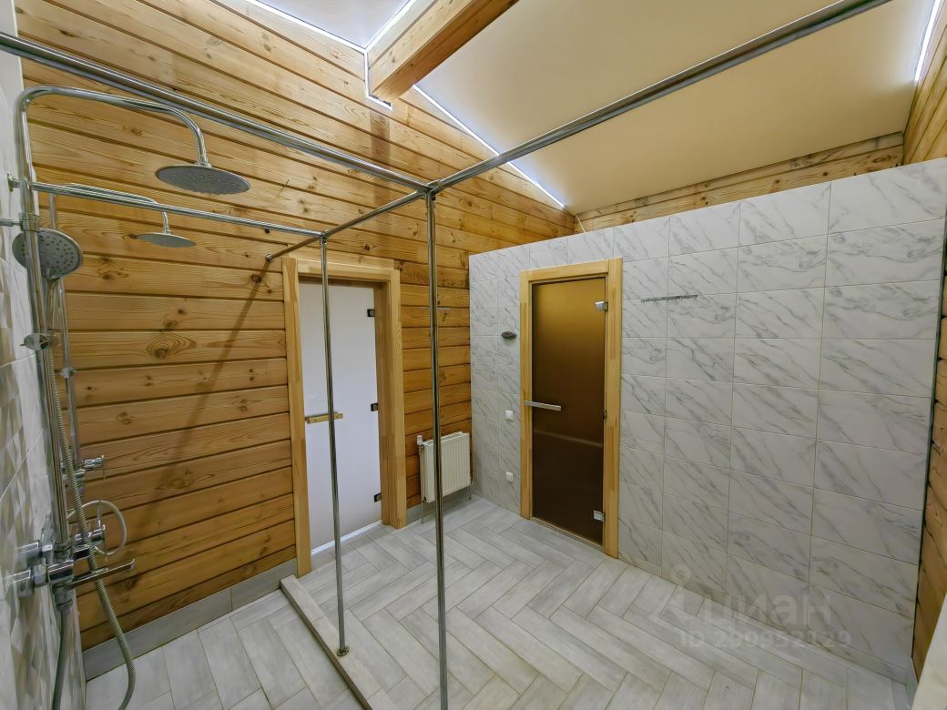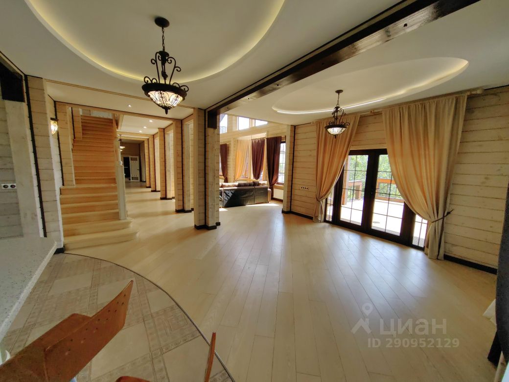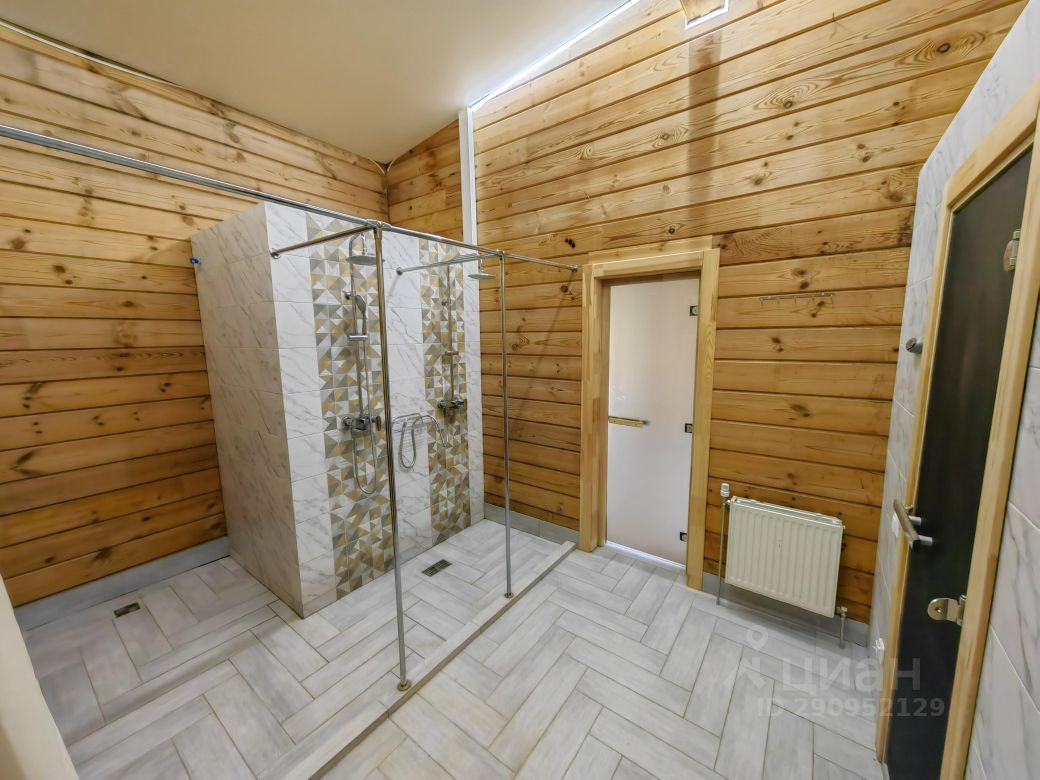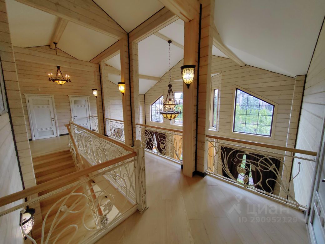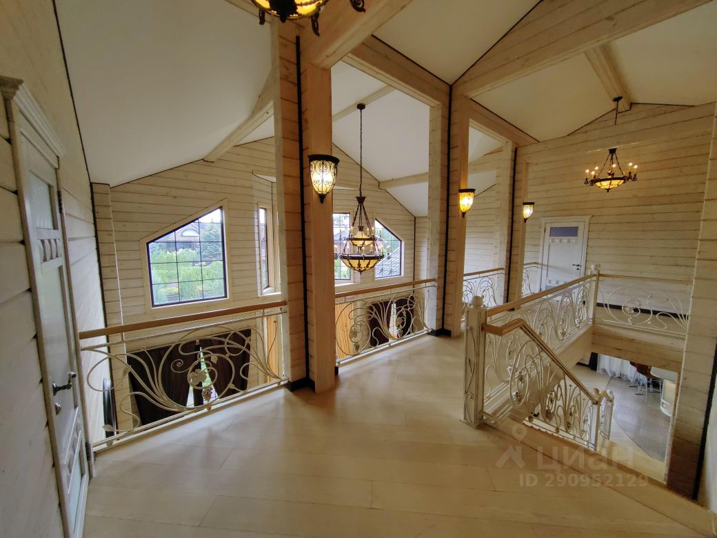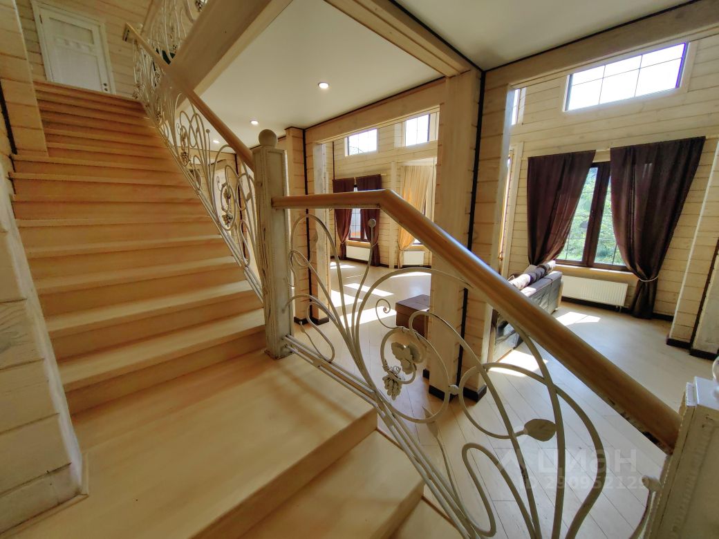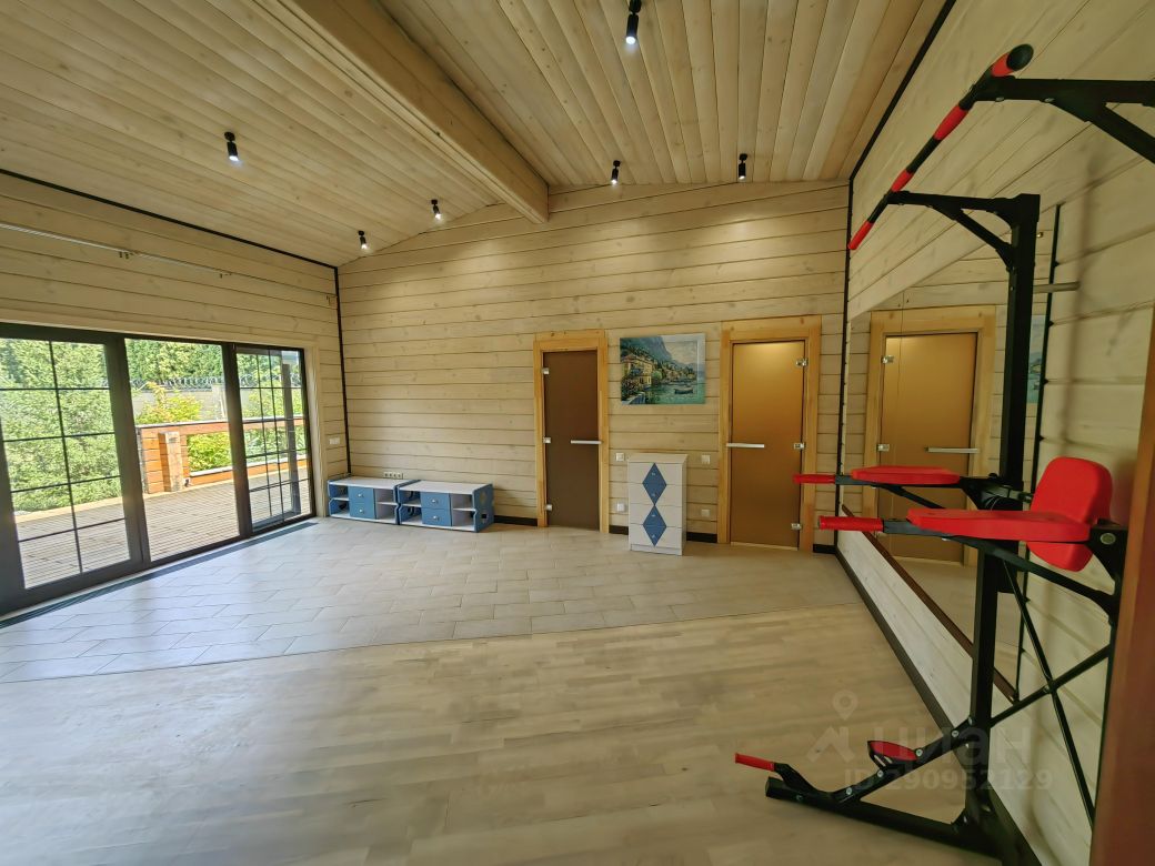 На первом этаже: гостиная со вторым светом (холл), кухня-столовая, спальня с отдельным входом, кабинет, тренировочный зал, баня, 3-сан.узла, две террасы (закрытая и открытая), прихожая, гардеробная, котельная, На втором: 2- спальни со своими санузлами и гардеробными+ ещё 3-спальни, 1 общий санузел, будуар, балкон с выходом из двух спален. К дому пристроен гараж на две машины, перед домом парковка на три авто.