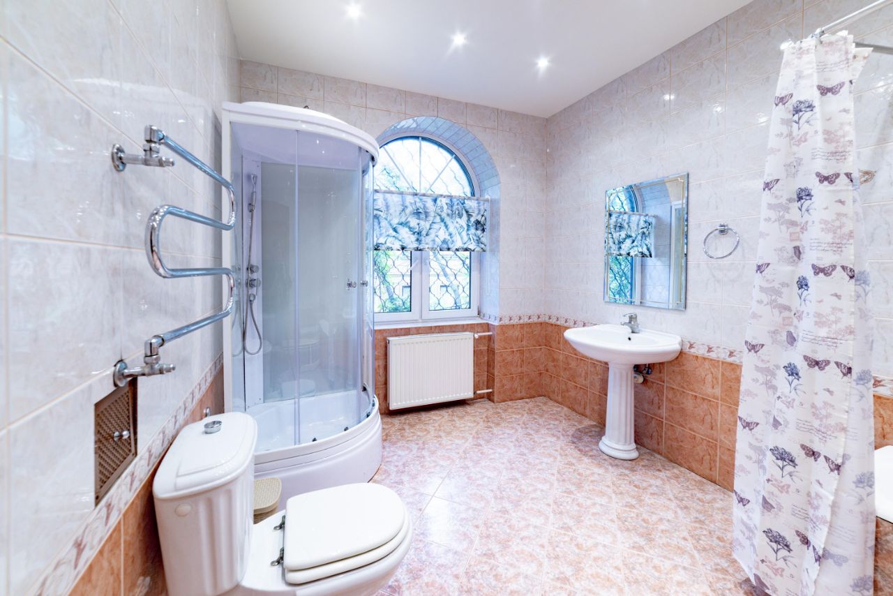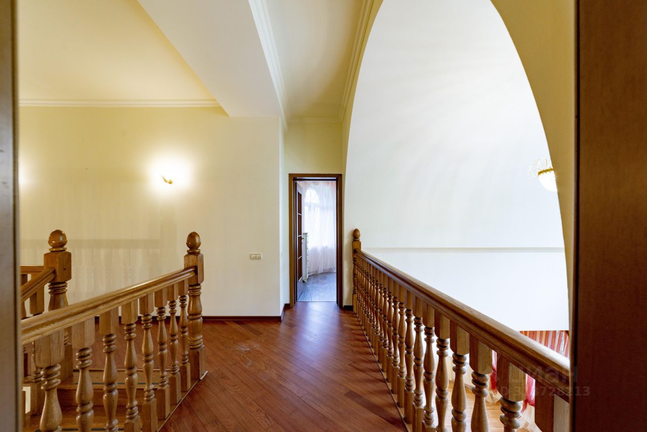 В доме 2 этажа: 1 этаж - зал с камином и выходом на участок, кухня-столовая, кабинет, , гардеробная, кабинет, санузел, спальня с полноценным санузлом с душевой кабиной, бойлерная, выход в гараж на два машиноместа, оборудованным автоматическими воротами. 2 этаж три спальни, мастер-спальня с ванной комнатой, отдельный санузел, а также постирочная. Коммуникации центральные, электричество 15 кВт, канализация - септик. Дом кирпичный, отличного качества, на участке есть баня с террасой, спортивная площадка для игры в баскетбол и т.п., красивый ландшафтный дизайн, взрослые деревья.