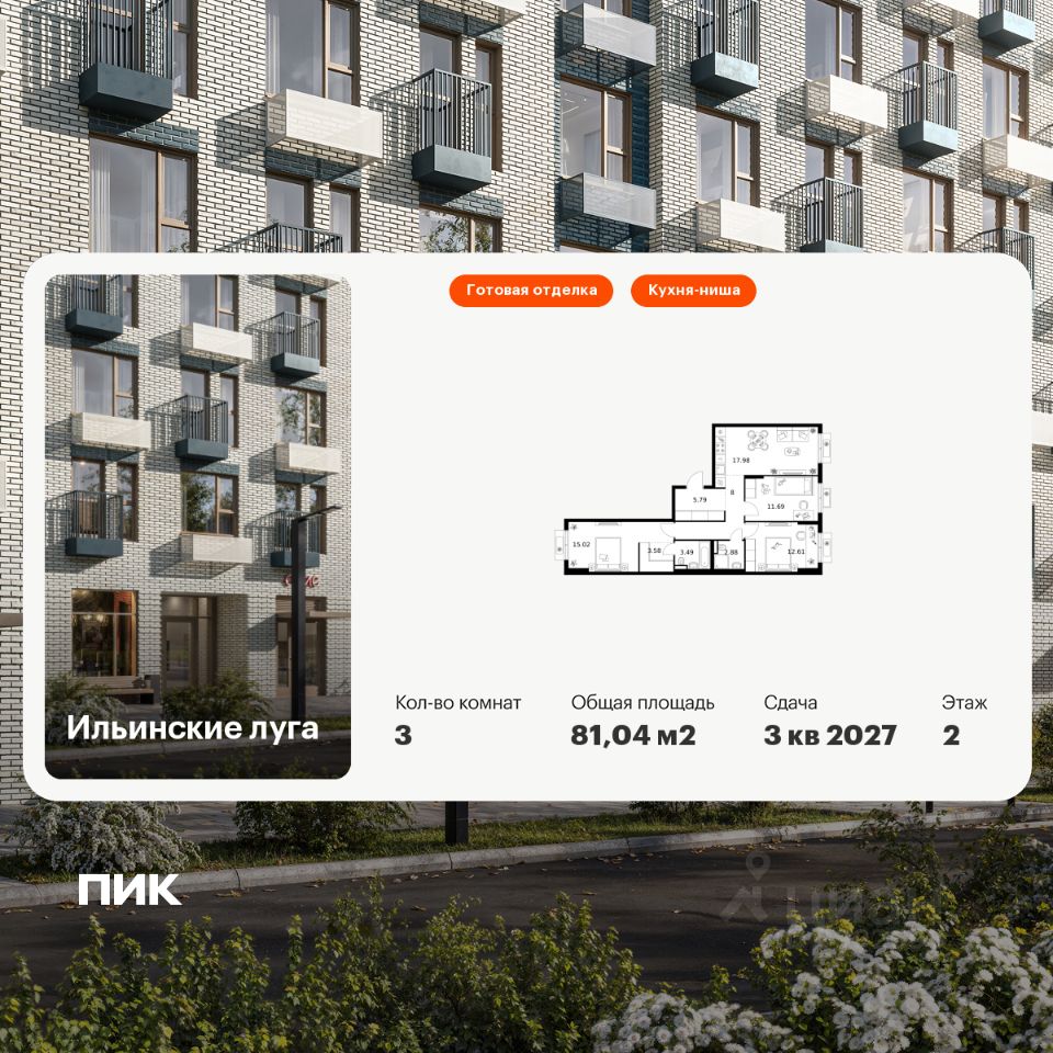 продам 3-к, Ильинские Луга ЖК, 4.118 987 672 ₽