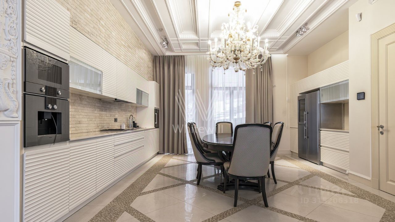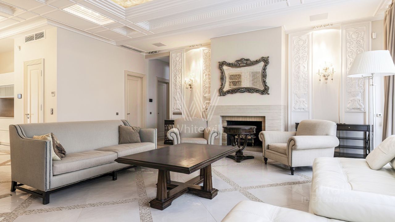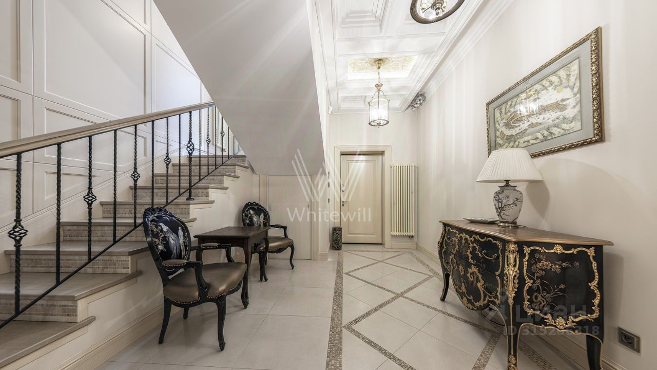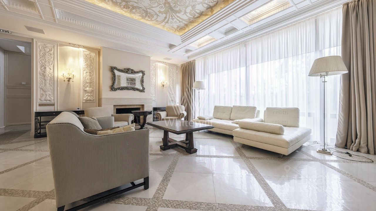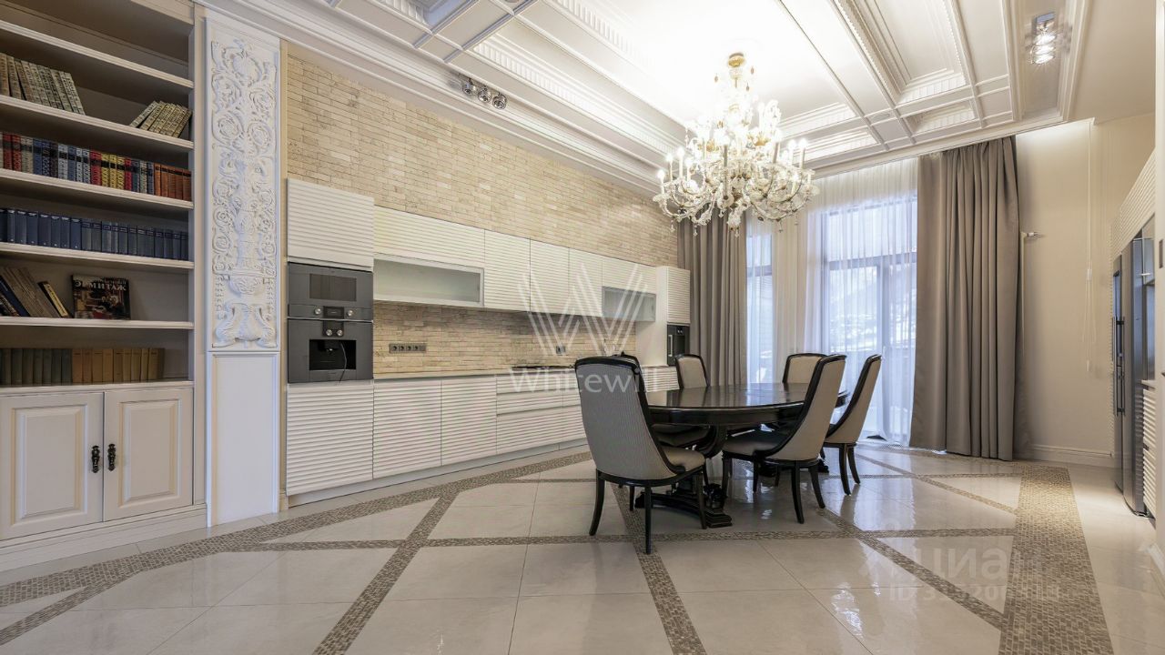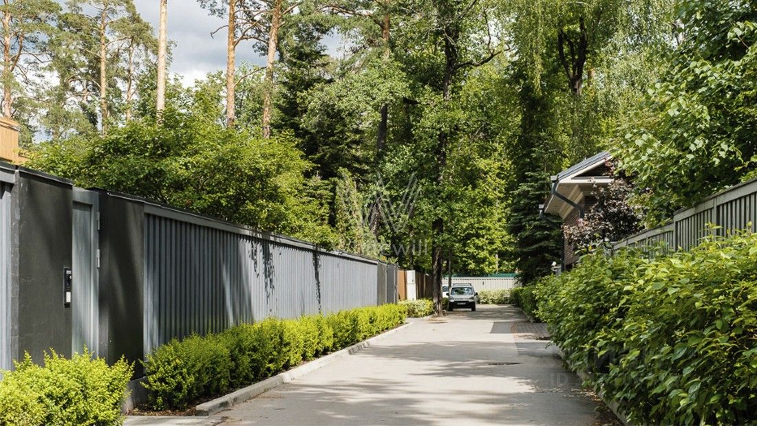 Ильинские дачи. Трехэтажный таунхаус площадью 350 м² расположен на лесном участке 5 соток. Фасад в современном стиле сочетает клинкерную плитку, штукатурку и дерево. Классический дизайн интерьера выполнен с светлых песочных оттенках, в декоре используются позолота, зеркала и орнаменты. Резиденция представлена с мебелью и техникой. Внутри спланировали 3 спальни, кухню-столовую-гостиную с камином, кабинет и гараж на 2 машины. Таунхаус оснащен системой ''умный дом''.