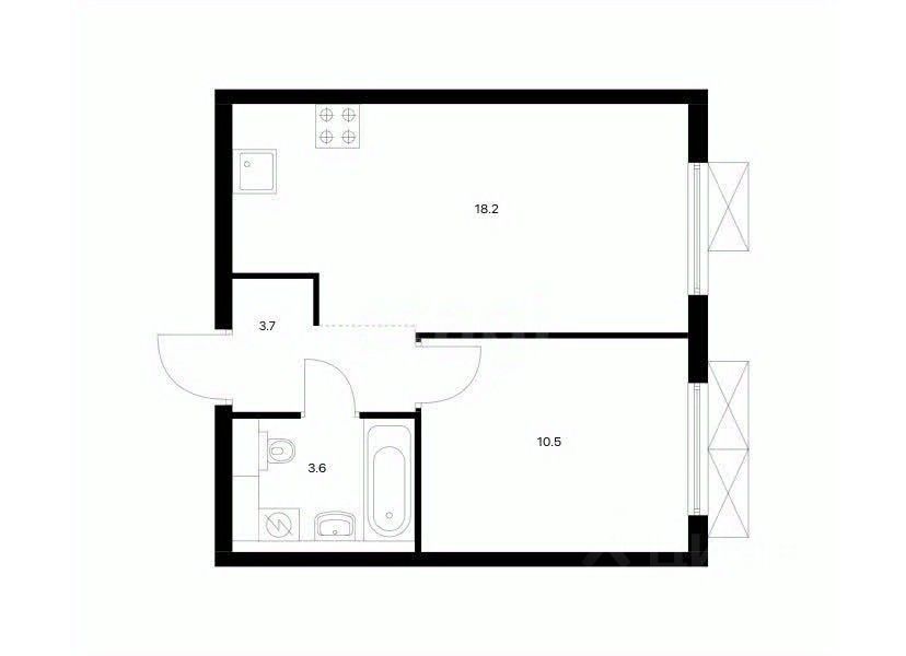 О квартире: уютная однокомнатная квартира с планировкой евроформата: просторная кухня-гостиная, площадью 18,2м2 и изолированная комната 10,5м2. В квартире один совмещенный санузел, площадью 3,6м2. Квартира сдаётся с чистовой отделкой и санузлом под ключ, останется только поставить мебель, заехать и жить.