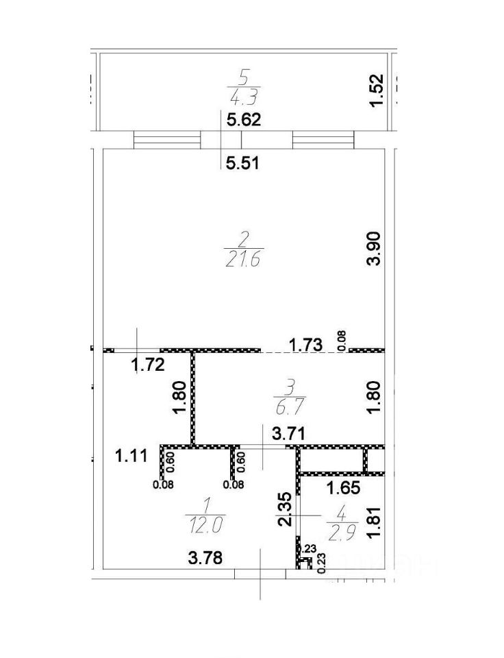 Евродвушка общей плoщадью 43,2 м2 с большим балконом. Без отделки, свободная планировка. Установлена новая входная дверь. Высота потолка 3 метра.