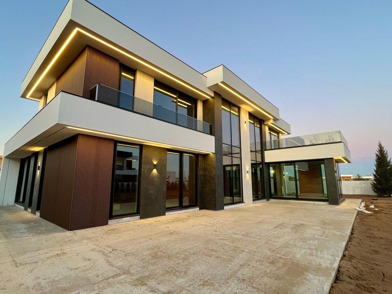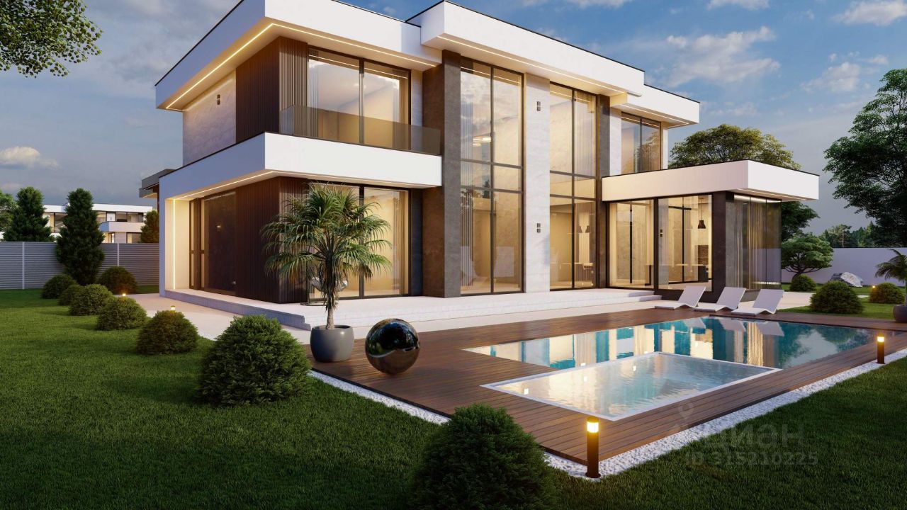 отличает сочетание строгих линий и ощущений стабильности, построена на компактном ухоженном участке площадью 16 соток, имеется гараж и навес на два автомобиля.