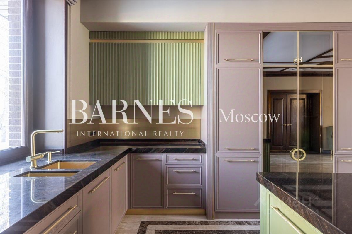 ID: 576615 Стильныи особняк в стиле Раит на лесном участке в Никольскои слободе. Просторные помещения, высокие потолки, открытые террасы и балконы. Дом строился ''для себя'', в отделке интерьеров используются качественные и натуральные материалы (мрамор, массив дерева, мозаика, дорогие чугунные батареи и др.). Фасад дома - клинкерныи кирпич.