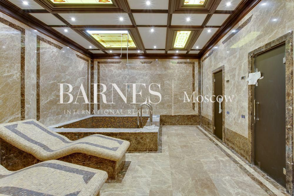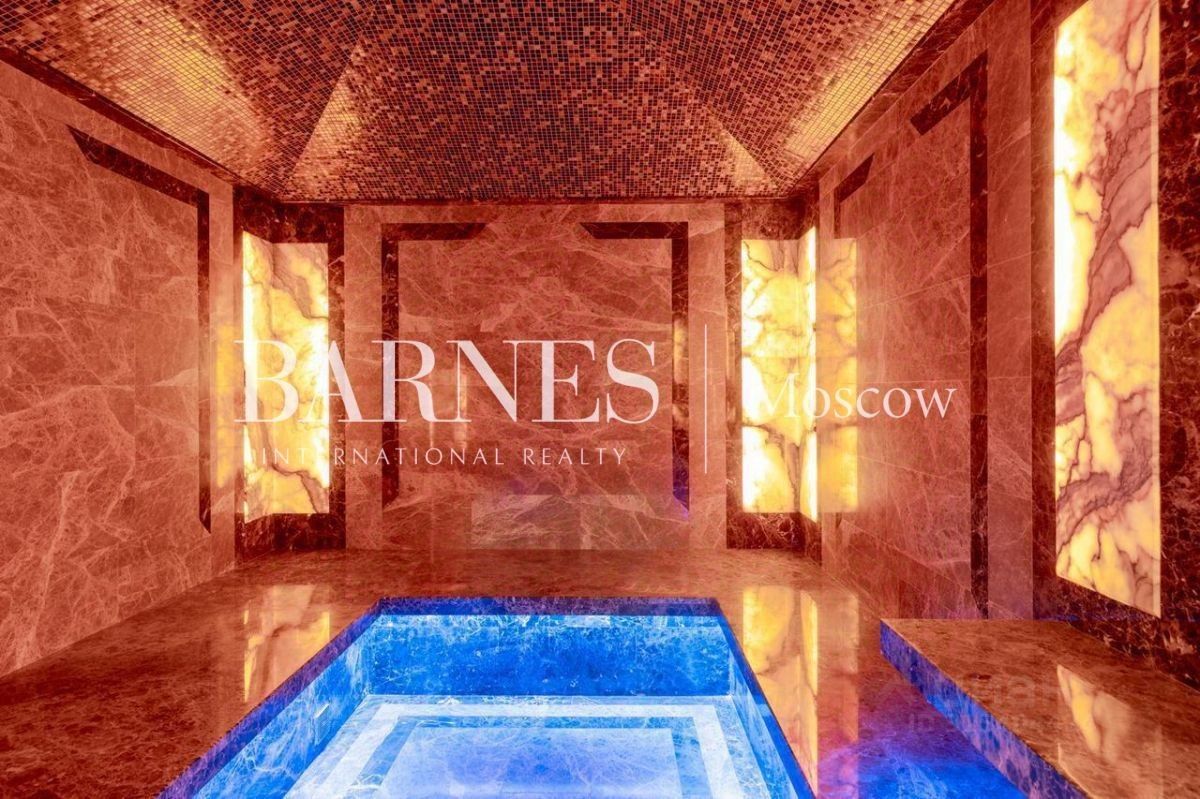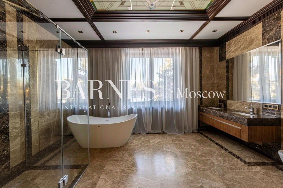 Планировка дома: Цоколь: Бильярдная, зона отдыха, кальянная, кинотеатр, тренажерныи зал, два санузла, раздевалка, душевая, серверная, котельная, 1 этаж: прихожая, санузел, гардеробная, гостиная с камином, кухня, столовая, выход на террасу с джакузи и зонои барбекю, библиотека, гостевая спальня с ванной и гостинои, переход в спа-зону: комната отдыха, санузел, бассеин (15х6м), выход на террасу, сауна, хамам, купель, 2 этаж: холл, мастер-спальня с ванной, гардеробнои и балконом, две спальни, санузел.