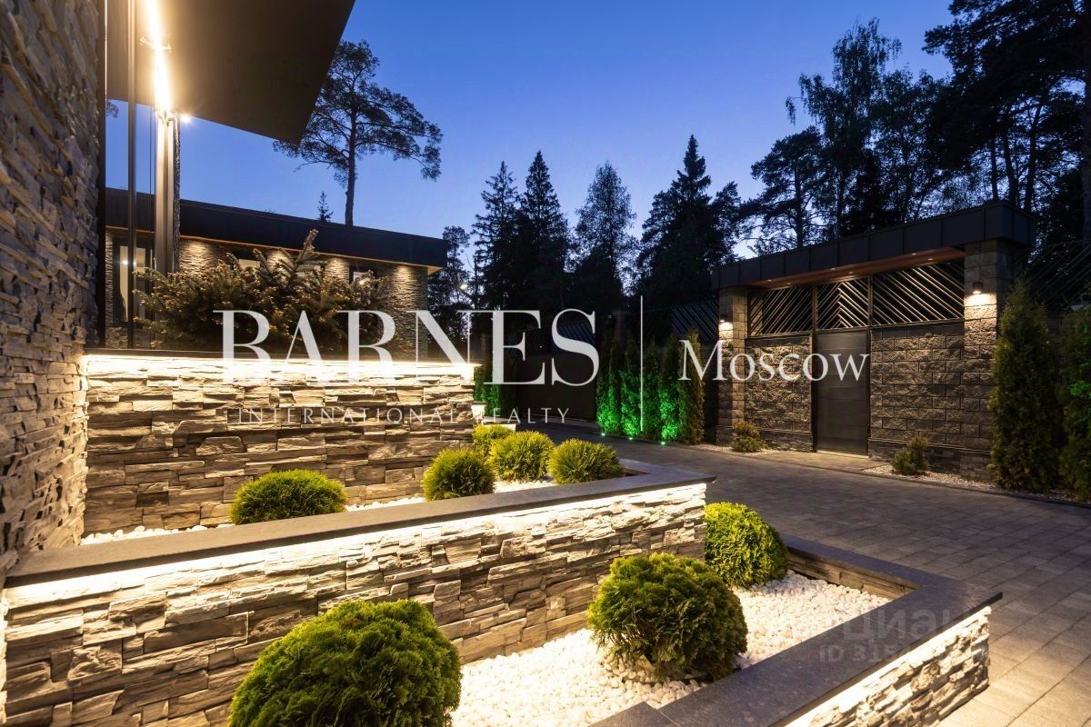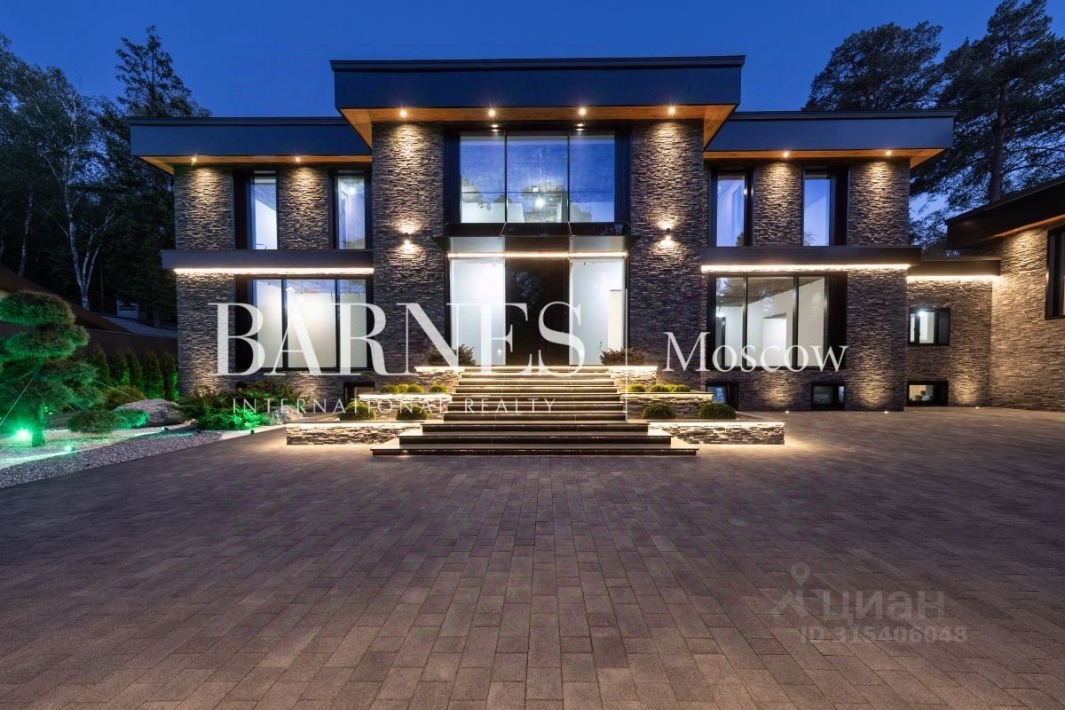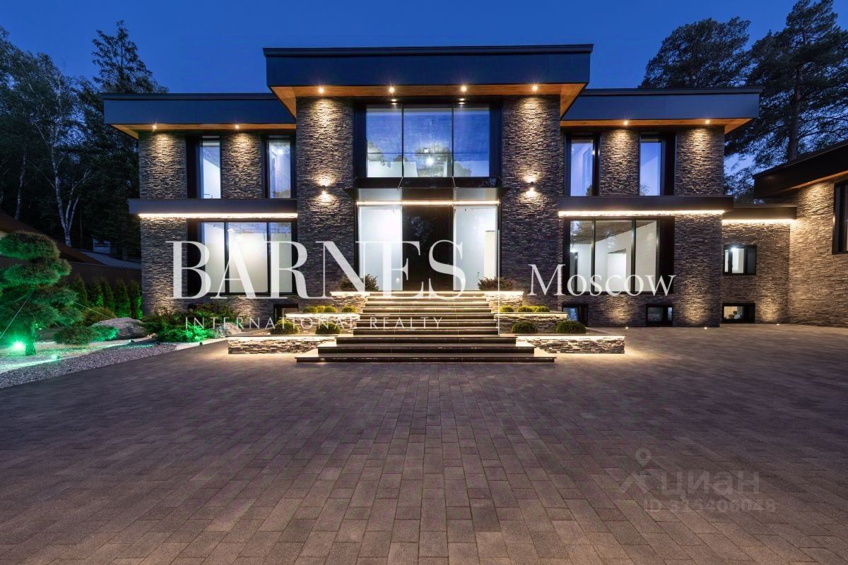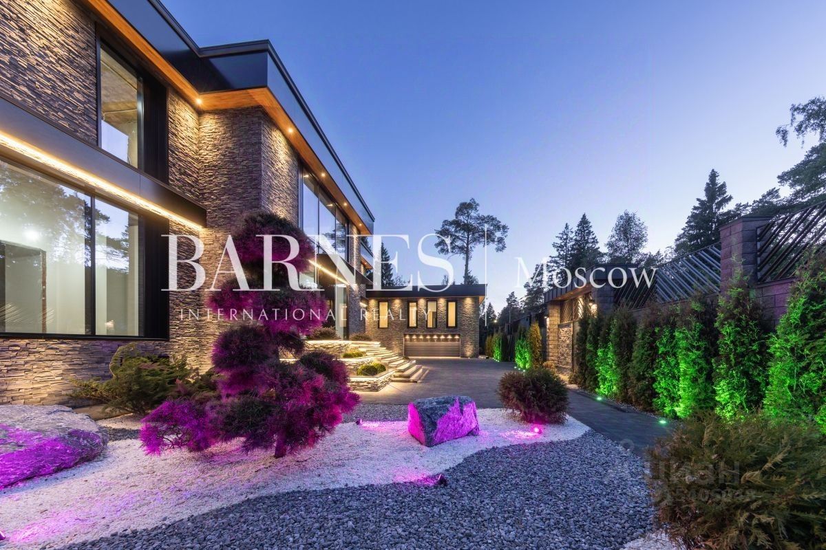 Особенности дома: Ультрасовременная архитектура, реликтовый лес, дизайнерская подсветка фасада, понорамное остекление, плоская кровля, высокие потолки, лифт, спа-зона с бассейном, сауной и хаммамом, отдельный блок для персонала и охраны, два гаража на 8 машиномест.