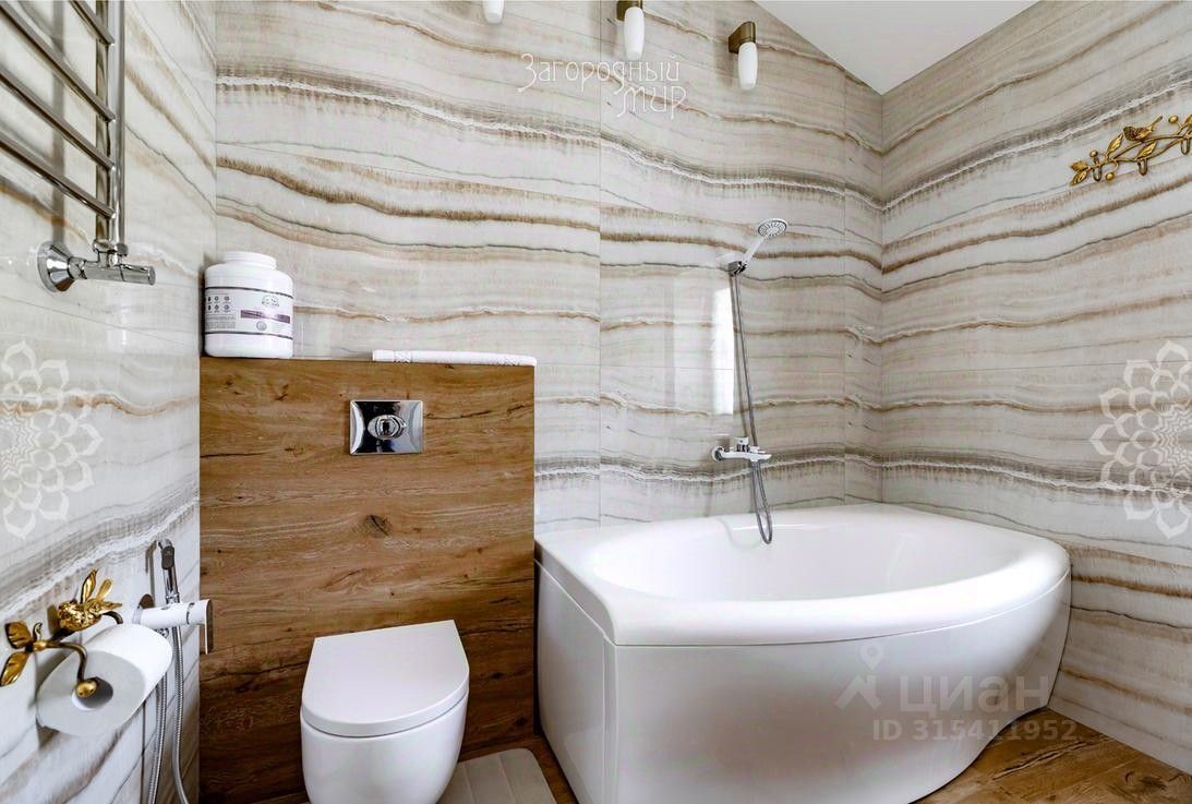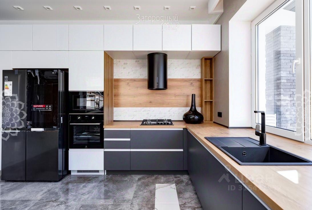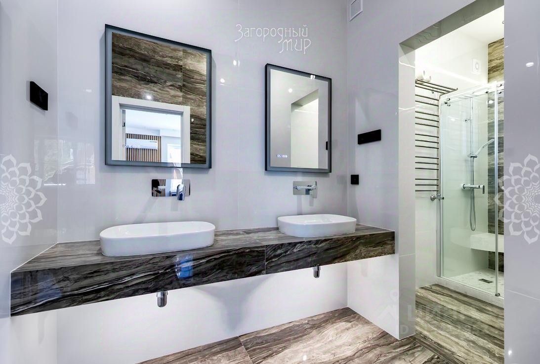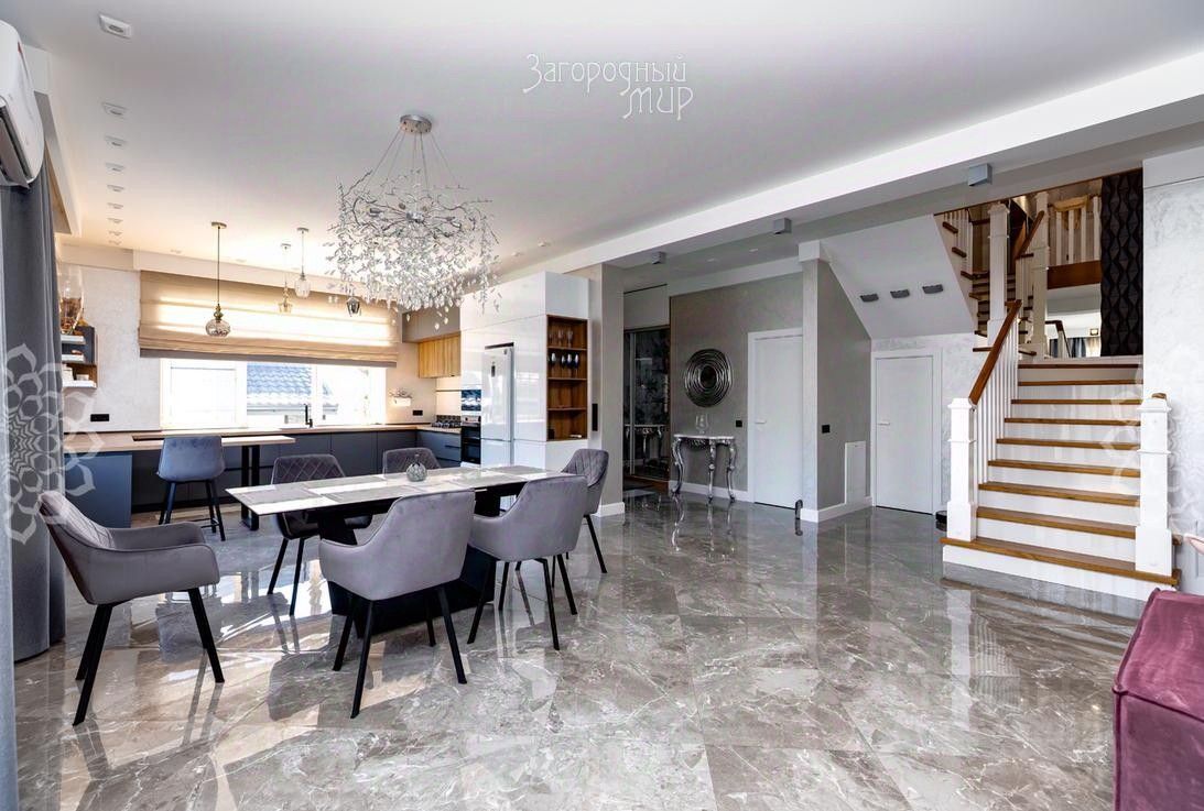 Дом разделен на две независимые части с отдельным входом в каждую. Одна часть площадью 220 кв.м, имеет 3 спальни, 2 санузла, полностью оборудованная кухня-столовая, гостиная, гардеробная, постирочная, кабинет. Вторая часть площадью 160 кв.