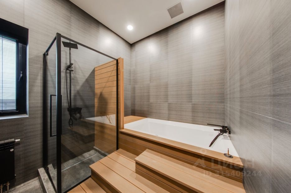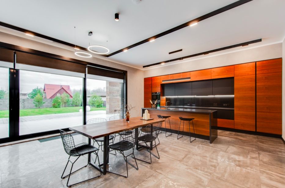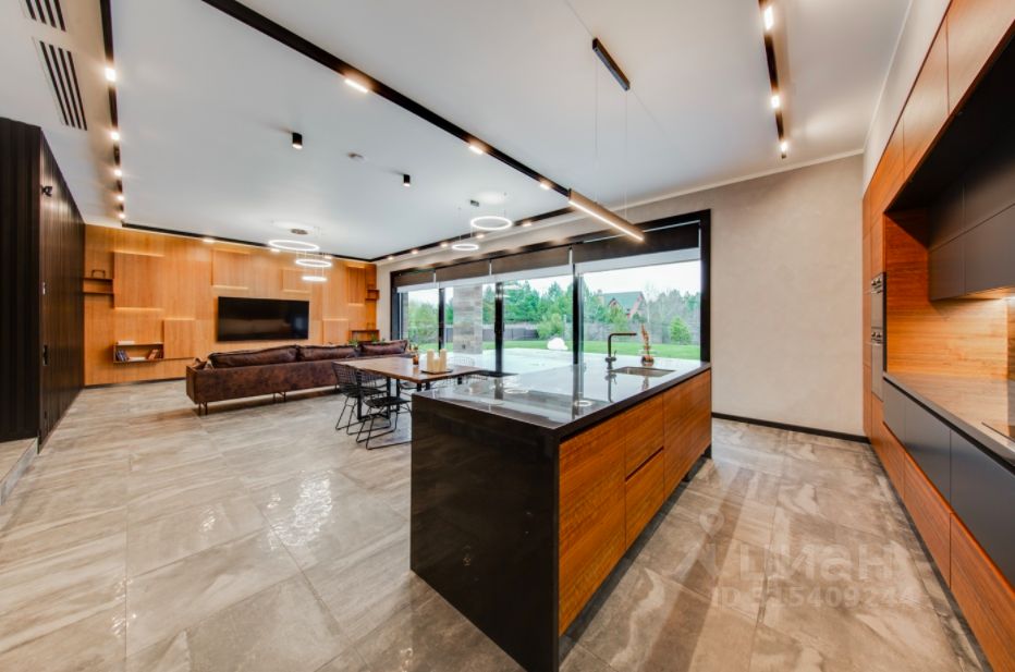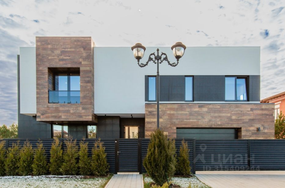 ОПИСАНИЕ: Современная загородная резиденция, выполненная по индивидуальному проекту. В отделке фасада преобладает натуральное дерево и плитка, в темное время суток подсветка фасада превращает дом в произведение искусства. Современные планировочные решения предусматривают функциональные и комфортные зоны для проживания. В доме предусмотрена эксплуатируемая кровля и терраса, откуда открывается великолепный вид на ухоженный участок и посёлок. Дизайн интерьера выполнен в стиле ар-деко, где преобладает черно-белый контраст. Мебель и техника от известных производителей, в отделке также преобладают ценные породы древесины и плитка. Высокие потолки 3,7 метра, просторный холл с камином создают чувство комфорта и уюта. Окна в доме от компании Schuco, теплые полы, система умный дом и очистки воды, приточновытяжная вентиляция и кондиционирование. Отапливаемый гараж внутри дома на 2 мм. На ухоженном приватном участке, площадью 24,5 соток, высажены туи, аккуратный зеленый газон. Предусмотрено место для открытого паркинга. Центральные коммуникации.