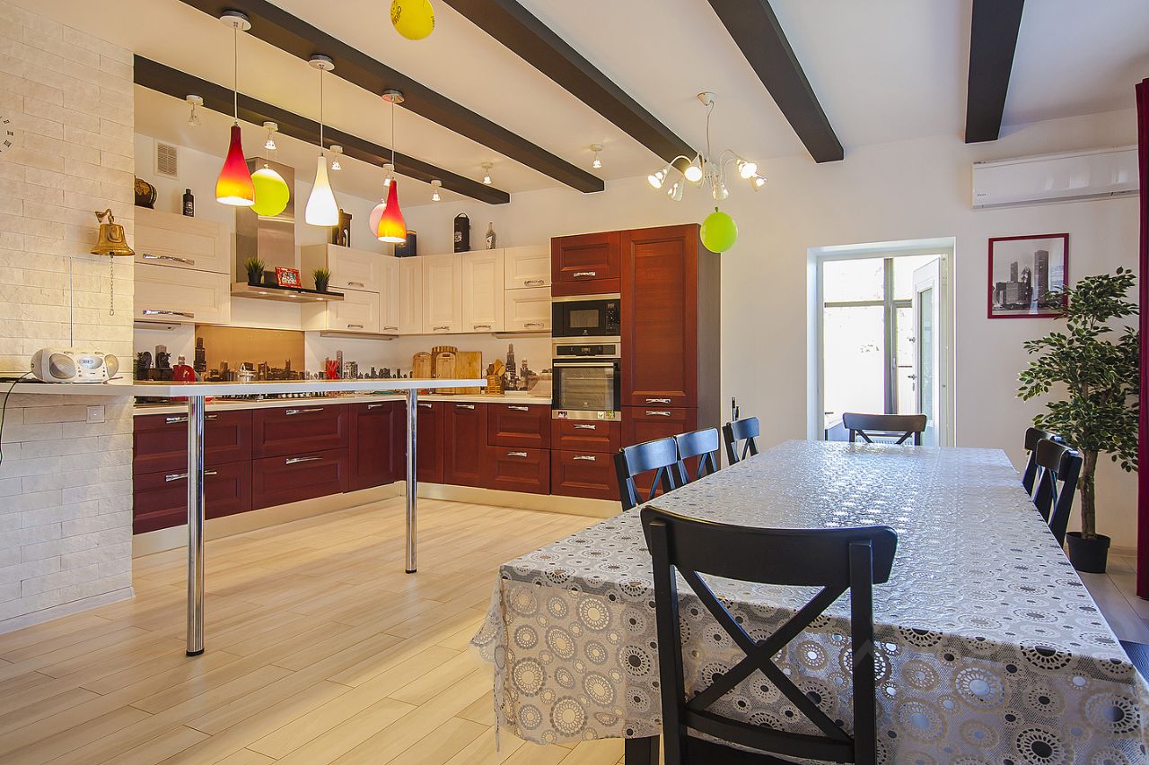 Все комнаты в доме оборудованы бытовой техникой: кондиционеры, освещение, пылесосы на каждом этаже, телевизоры, на кухне встроенная бытовая техника.