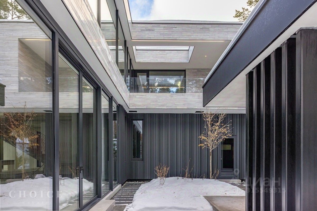 Лот 35764. Современный дом 1050 кв.м с плоской кровлей и большим панорамным остеклением, расположен в поселке Никольская слобода, самом близком из всех элитных поселков Новорижского шоссе. В доме: 5 спален, 7 с/у, парадная и техническая кухни, шикарная гостиная с панорамными окнами и эксклюзивным стеклянным камином, спа-зона с сауной и купелью, уличный подогреваемый бассейн 4,8*2 м для круглогодичного использования, кабинет, домашний кинотеатр, патио для барбекю с дровяной печью и зоной для мангала и казана, гараж на 3 м/м с двумя автономными воротными секциями, 2х-комнатная квартира для персонала. Особенности дома: ультрасовременная архитектура, панорамные окна (остекление занимает 50% площади фасада), по-настоящему лесной участок, высокие потолки (после отделки: 3,2-3,7 м) и межкомнатные двери (до 2,6 м в основных помещениях). Полностью завершены фасадные и ландшафтные работы. Дом продается под отделку с полным комплектом проектной документации, дизайн-проектом и спецификацией по обустройству и меблировке. Это не дом со свободной планировкой, а полностью продуманный интерьер, где визуализации до мелочей соответствуют проектной документации, вплоть до розеток и выключателей. Отделка - дело техники: есть опытная команда исполнителей, четкая смета и понятные сроки (не больше года). Дизайн интерьера выполнен в стиле теплого минимализма. В основе проекта: функциональность и вариантивность планировок, отделка натуральными материалами, обилие воздуха и света, особый акцент - на виды из окон. Уровень брендов, заложенных в дизайн-проект, соответствует высокому классу объекта. 1 этаж: прихожая, холл, гардеробная, санузел - 2шт., гараж, котельная, постирочная, кладовая, гостиная, кухня, столовая, рабочая кухня, спальня с санузлом, СПА-комплекс, сауна, терраса 2 этаж: мастер - спальня с санузлом и гардеробной, кабинет, спальня с санузлом - 2шт., спальня с гардеробной и санузлом, библиотека, гостиная, квартира для персонала