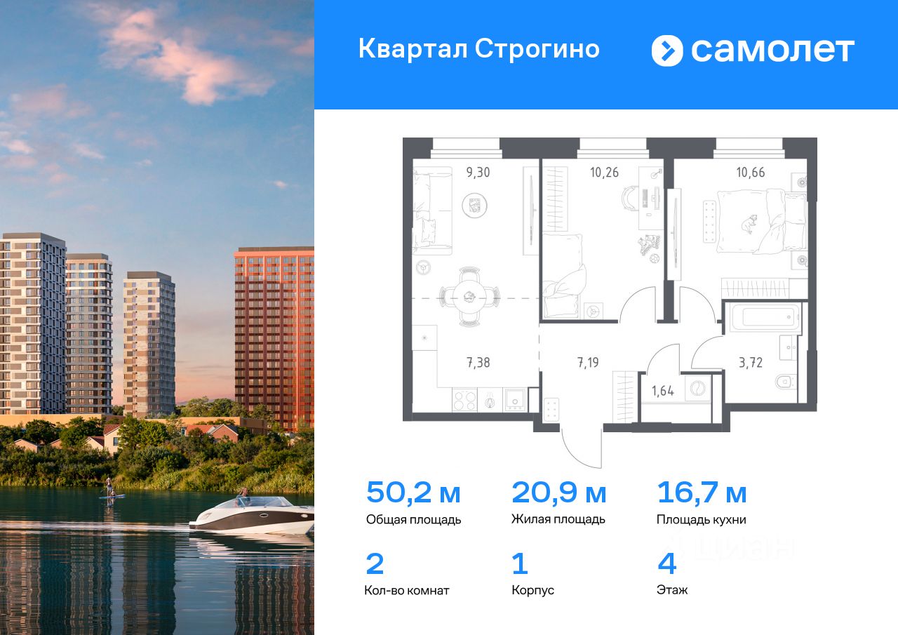 Предлагается 2-комнатная квартира комфорт-класса 50,15 кв.м в корпусе 1 на 4 этаже, в ЖК ''Квартал Строгино'' Квартира с чистовой отделкой. Доступность дополнительных опций уточняйте у застройщика.