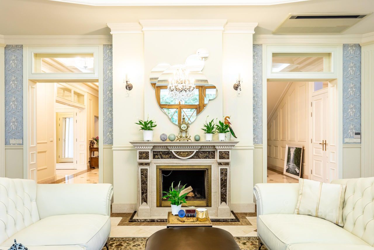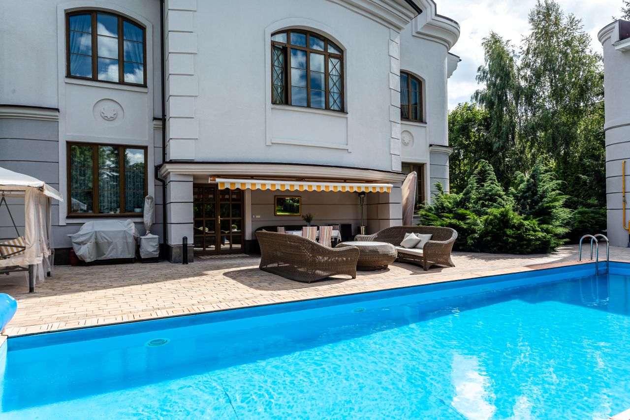 Архитектура и интерьер дома выполнены в сдержанном европейском стиле, Дом строился для жизни и досуга большой дружной семьи. Атмосфера уюта и комфорта чувствуется, как только попадаешь внутрь дома. Территория участка скрыта от внешнего внимания густой, зеленой стеной декоративных насаждений. На участке, дом для персонала, открытый 12-метровый бассейн.