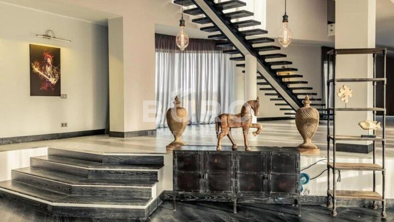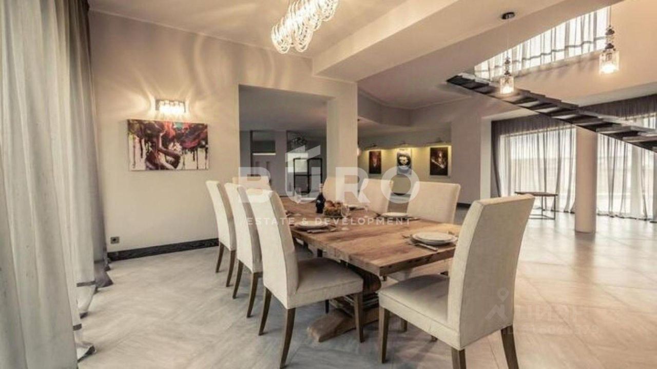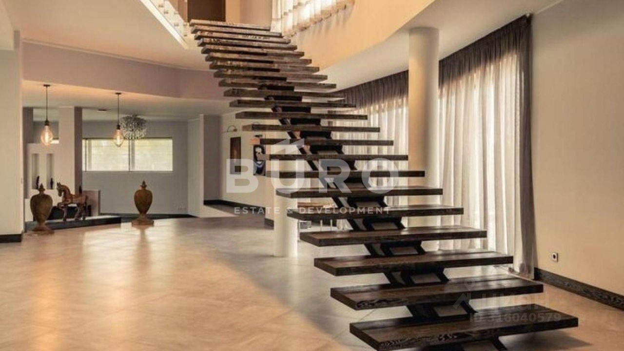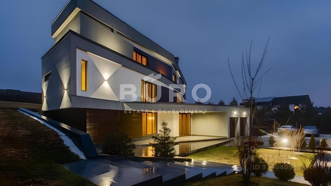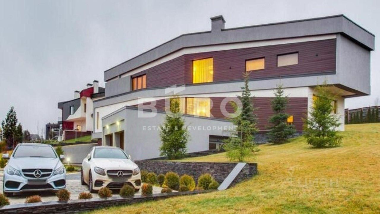 Разноуровневый участок 40 соток с ландшафтным дизайном. Высажены туи, сосны, клены и другие крупномеры, установлена система автополива, освещение, вымощены дорожки. В доме панорамное остекление. В отделке интерьеров использовались дорогие, качественные материалы (камень, дерево, ковка).