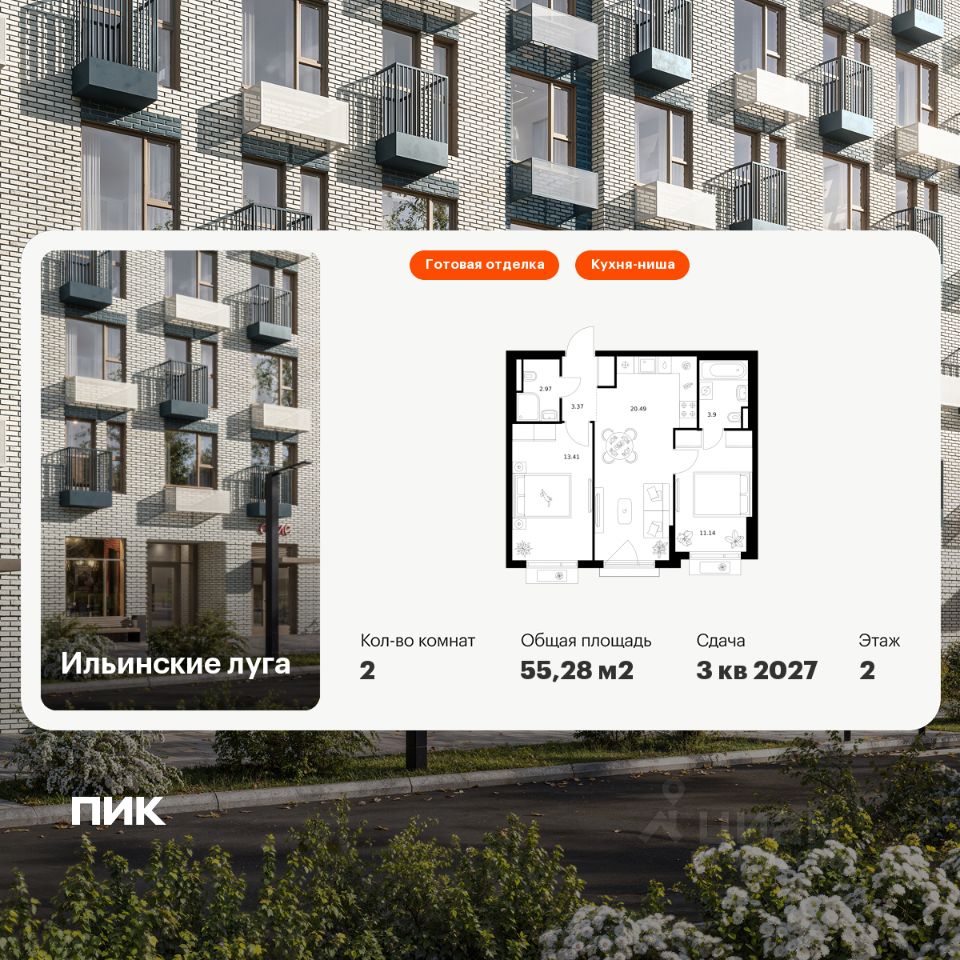 Продаётся 2-комн. квартира площадью 55,28 кв.м на 2 этаже 9 этажного дома (Корпус 4.1, Секция 4) проекта ПИК Ильинские луга. Светлый просторный подъезд на уровне земли, функциональная планировка, большие окна, c отделкой.