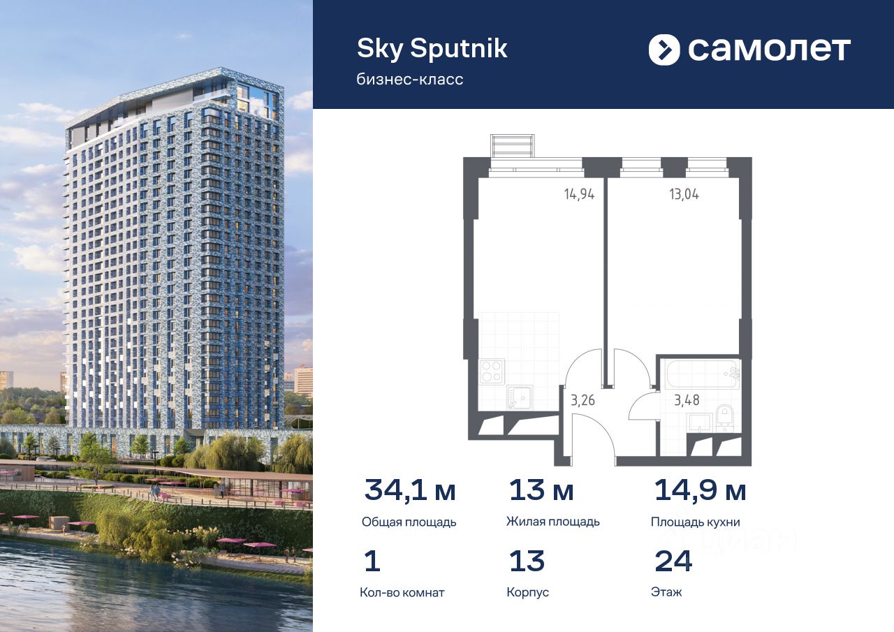 Предлагаются 1-комнатные апартаменты бизнес-класса 34,1 кв.м в корпусе 13 на 24 этаже, в Sky Sputnik Апартаменты с чистовой отделкой. Доступность дополнительных опций уточняйте у застройщика.