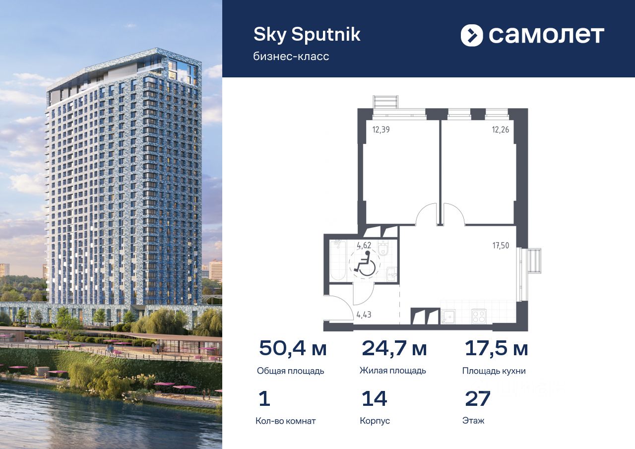Предлагаются 1-комнатные апартаменты бизнес-класса 50,4 кв.м в корпусе 14 на 27 этаже, в Sky Sputnik Апартаменты с чистовой отделкой. Доступность дополнительных опций уточняйте у застройщика.