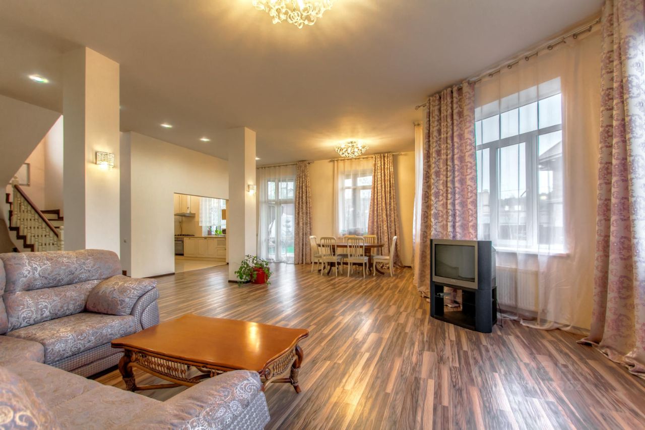 1-й этаж: прихожая, большая гостиная с камином, кухня-столовая с выходом на террасу, гардеробная, комната, с/у,