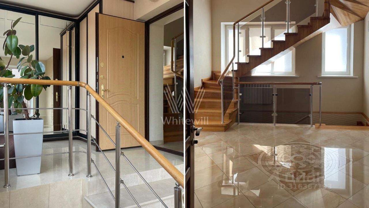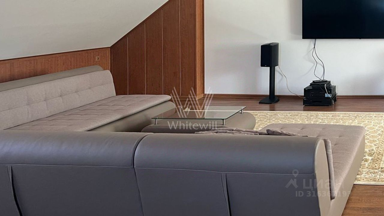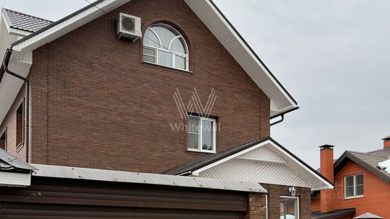 ID 13 478. Нахабино. Загородный коттедж площадью 612 м² расположен на полевом участке 6,5 соток. Дом разделен на две равные части и имеет общую территорию с 2-мя въездами. Современный фасад облицован кирпичом благородного коричневого оттенка. Интерьеры выдержаны преимущественно в светлых тонах и дополнены комфортной мебелью, бытовой техникой и сантехникой. Для дополнительного удобства предусмотрены система кондиционирования и встроенный гараж. Планировка каждой части дома включает просторную гостиную, кухню, 3 уютных спальни и сауну. Участок благоустроен — на нем засеян газон и построен мангальный домик для теплых вечеров в кругу семьи и друзей.
