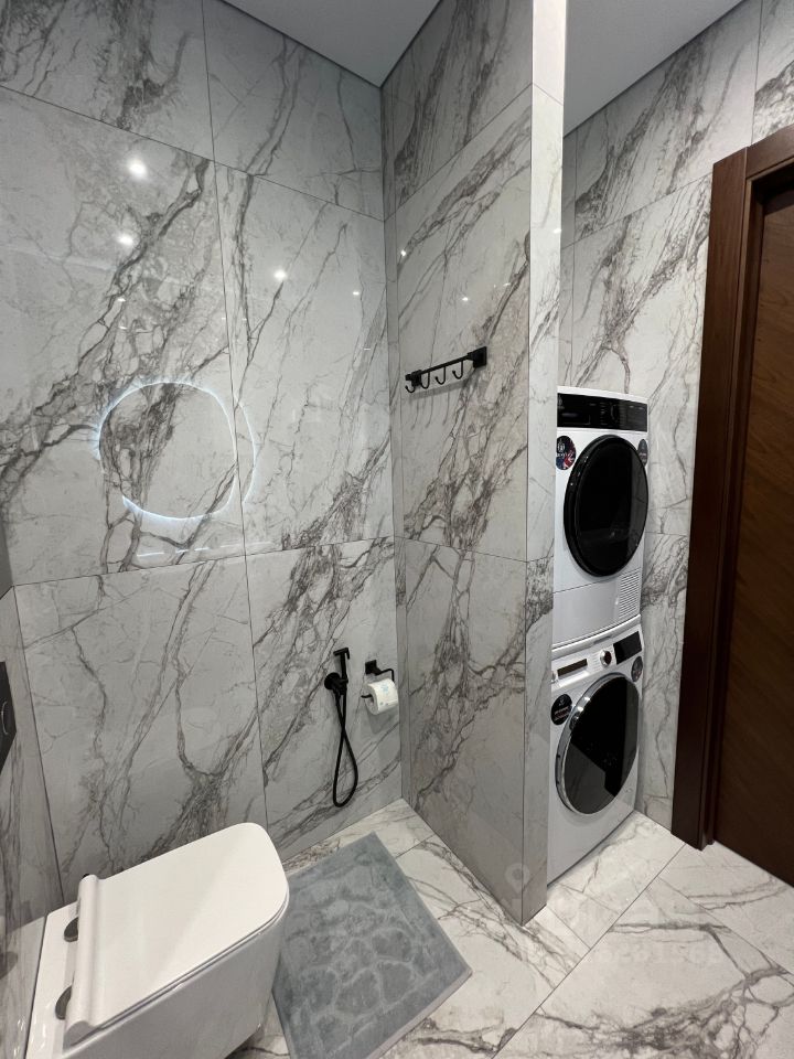 Большая мастер-санузел ванная, совмещенная с душевой - просто шедевр. Гостевой санузел совмещен с постирочной.