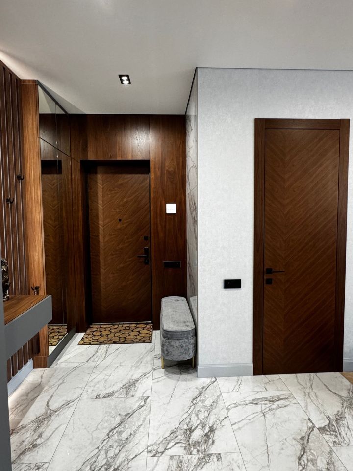 Высота дверей 2,4 м., натуральный шпон американского ореха,